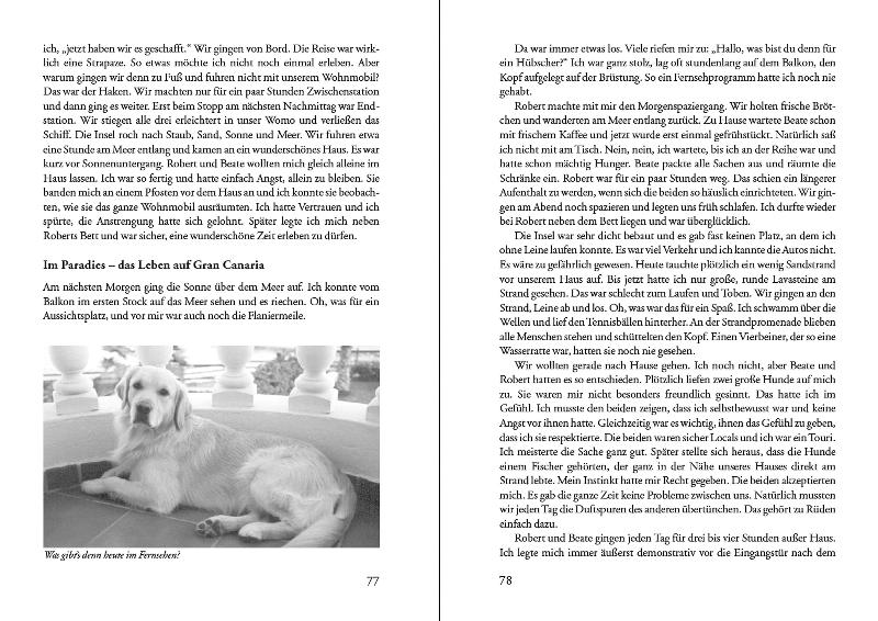 In diesem Buch schildert der Golden Retriever Ipo seine Erlebnisse über einen Zeitraum von acht Jahren. Er berichtet von seinen Ursprüngen am Strand von Hawaii. Heiter und einfühlsam beschreibt er seine Zeit als Welpe bis zum erwachsenen Goldie Rüden. In 66 Geschichten erzählt Ipo aus seinem Alltag und von unzähligen Reisen quer durch Europa. Mit vielen Bildern untermalt, schildert die Autorin die Welt aus Hundeperspektive und menschlicher Sicht. Ein schönes Beispiel für die tiefe Verbundenheit und einzigartige Partnerschaft zwischen Hund und Mensch.