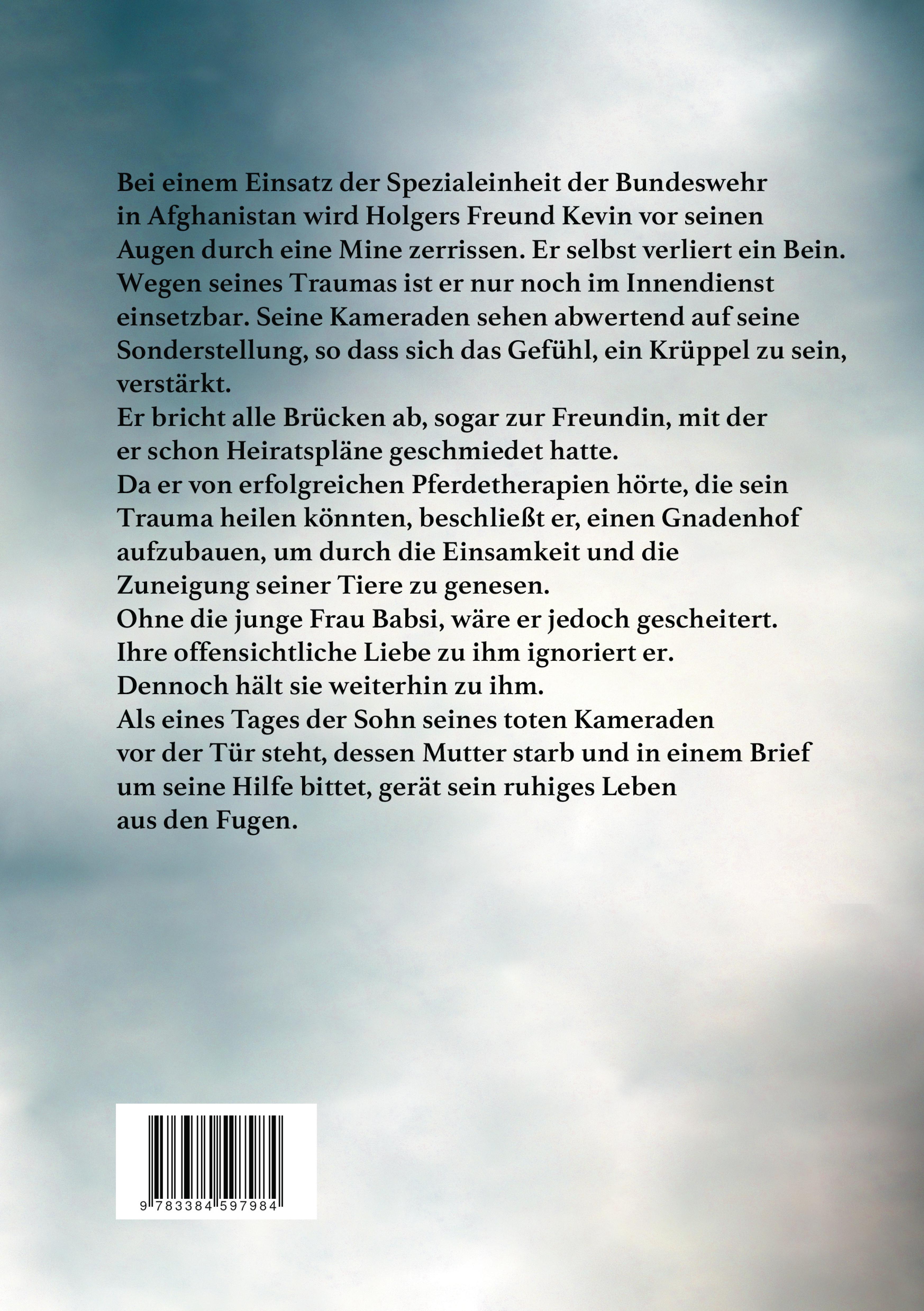 Holger muss während eines Spezialeinsatzes in Afghanistan zusehen, wie sein Freund Kevin von einer Mine zerrissen wird, und verliert selbst ein Bein. Er fühlt sich als Krüppel und will das Mitleid seiner Mitmenschen nicht. Er bricht alle Brücken ab und trennt sich per Brief auch von seiner Freundin, die er nach seinem Einsatz heiraten wollte. In einem entlegenen Dorf baut er sich einen Gnadenhof für verschiedene Tiere auf, von denen er sich in der Einsamkeit Heilung von seinem Kriegstrauma erhofft. Die junge Frau Babsi hilft ihm dabei und ist gleichzeitig seine Verbindung zur Welt. Ihre Liebe zu ihm will er nicht sehen. Sie passt nicht in sein neues Leben. Dennoch hält sie weiter zu ihm. Eines Tages steht Vincent, der Sohn seines Kriegskameraden vor der Tür. Die Mutter schrieb auf dem Totenbett einen Brief, in dem sie bittet, ihren Sohn an Vater statt aufzuziehen. Babsi überredet ihn, den Jungen aufzunehmen, den er abweisen will, da der ihm zu verweichlicht ist und seine Ruhe stören würde. Sein ursprünglicher Plan gerät aus den Fugen.