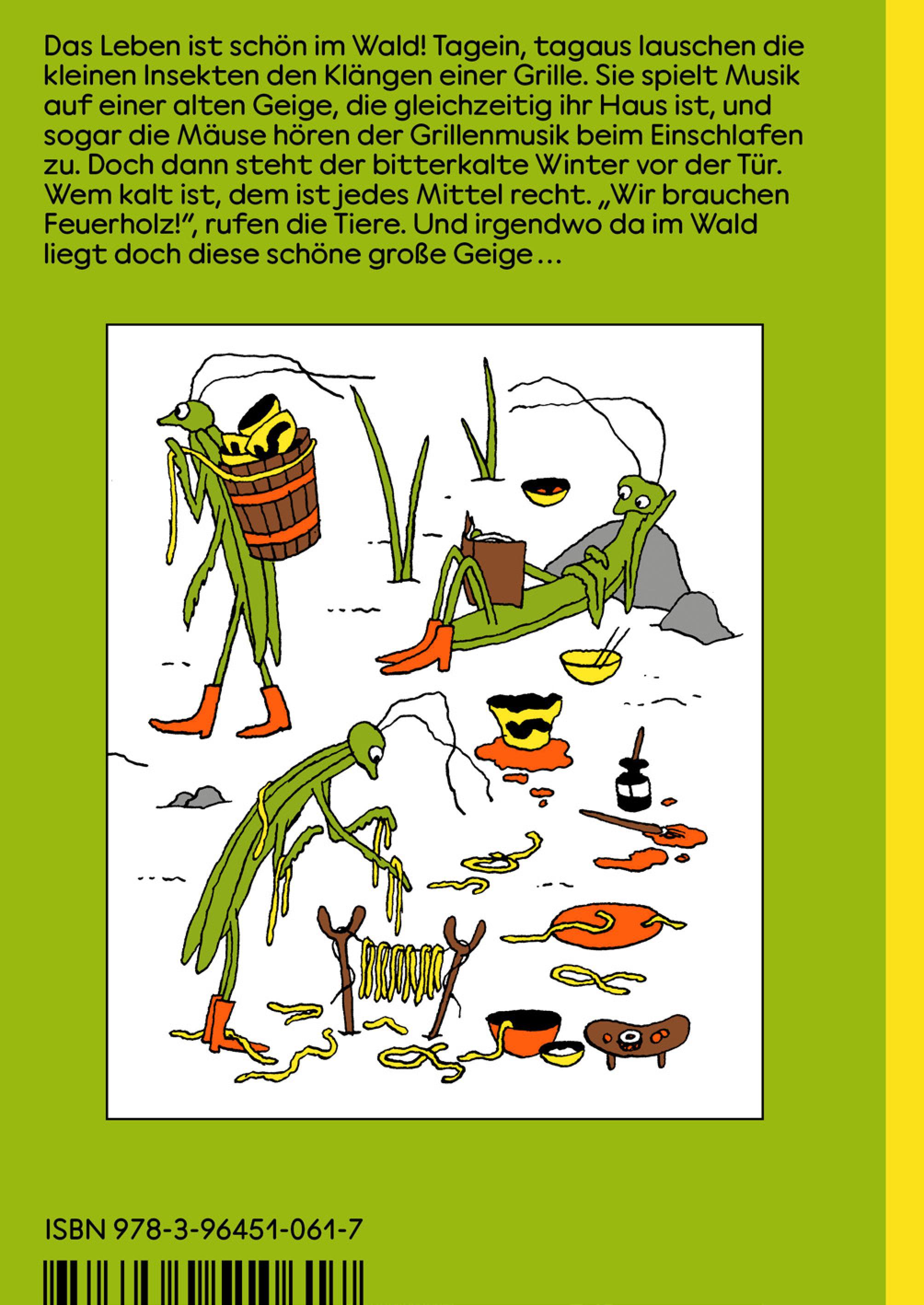 | Schlagworte | Anna Haifisch • Bedeutung von Kunst • Bilderbuch • Comic • Die Grille in der Geige • Empathie • Fabel • Geige • Geige als Zuhause • Grille • Humor • Insekten • Insektenprotagonisten • Kinderbuch • Kindercomic • Melancholie • Musik • Musik und Gemeinschaft • Reue • Solidarität und Zusammenhalt • Tierfiguren • Tiergeschichte • Waldtiere • Winter und Entbehrung |