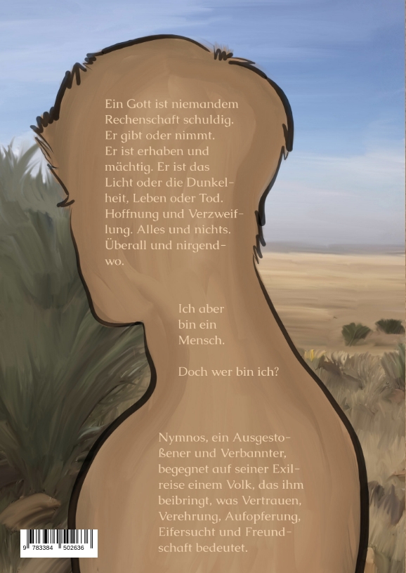 Ein Gott ist niemandem Rechenschaft schuldig. Er gibt oder nimmt. Er ist mächtig und erhaben. Er ist das Licht oder die Dunkelheit. Leben oder Tod. Hoffnung und Verzweiflung. Alles und nichts. Überall und nirgendwo. Ich aber bin ein Mensch. Doch wer bin ich? Momentan hat meine Meinung ein unumstößliches Gewicht. Die meisten wagen nicht, mir zu widersprechen. Ich bin in eine Situation geraten ... unverschuldet und unbeabsichtigt. Andere würden sagen, ich war zur richtigen Zeit am richtigen Ort. Aber ob es wirklich richtig ist, dass ich hier bin? Wo soll ich bloß anfangen? Habt ihr eine Ahnung, wie es ist, ein Gott zu werden?Nymnos, ein Ausgestoßener und Verbannter, begegnet auf seiner Exilreise einem Volk, das ihm beibringt, was Vertrauen, Verehrung, Aufopferung, Eifersucht und Freundschaft bedeutet.