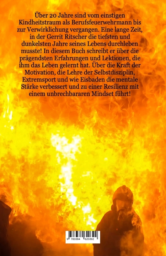 Gerrit Ritscher ist 27 Jahre alt und Berufsfeuerwehrmann und Notfallsanitäter in Hamburg. Während des langen Weg vom Kindheitstraum bis zur Erfüllung meisterte er einige Hürden und nahm einiges in Kauf um an seinem Ziel anzugelangen. Er lernte so eine starke Disziplin, einen eisernen Willen und die Liebe zum Sport kennen. Egal ob schwimmen, laufen, Fahrrad fahren oder Kraftausdauertrainig, die Liebe zum Sport, um sich für den Job körperlich und geistig fit zu halten, steht immer mit an erster Stelle. Nebenbei engagiert sich Gerrit Ritscher auch in der Freiwilligen Feuerwehr. Nun hat er über seine Geschichte und ein paar Sportereignisse wie einen 24 Stunden Schwimmmarathon oder einen extrem Halbmarathon den er mit einem Atemschutzgerät als Zusatzgewicht von 20kg, im Winter bei Minusgraden nur in Kurzer Hose und Schuhen lief ein Buch geschrieben. In diesem Buch schreibt er über die Kraft der Motivation, die Lehre der Selbstdisziplin und wie man sich eine starke Resilienz aufbauen kann um sich psychisch soweit physisch unverwüstlich zu machen.