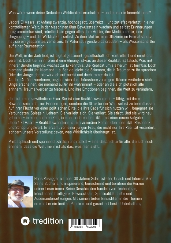 Hans Rosegger geb. 1953, ist Schriftsteller, Informatiker und Coach. Er arbeitete zunächst als Ingenieur in der Elektronikindustrie. Seit über 35 Jahren ist er nun als Coach/Hypnotherapeut tätig. Seine Bücher sind inspirierend und bereichernd. Sie behandeln eine Vielzahl von Themen wie Technologie, künstliche Intelligenz, Bewusstsein und Spiritualität. Mit seinen tiefen Einsichten und seiner Fähigkeit, komplexe Ideen verständlich zu vermitteln, erreicht er ein breites Publikum und berührt die Herzen seiner Leserinnen und Leser. Neben seinen Romanen, hat er mehrere Bücher zu den Themen Meditation und Bewusstsein verfasst. Doch seine große Liebe gilt dem Roman. In seinen Romanen erweckt er die phantastischen Erfahrungen der Hypnosetrancen und der meditativen Lebensweise zum Leben. Er entführt den Leser in die surrealen Welten des Geistes. Der Alltag wird in seinen Geschichten zum Spielraum unglaublicher Ereignisse und erweitert sich in die phantastischen Welten jenseits der üblichen Vorstellungen. In seinen Romanen lösen sich die Grenzen von Wissenschaft und Spiritualität auf und verschmelzen zu einem menschlichen Kontinuum ungeahnter Größe.