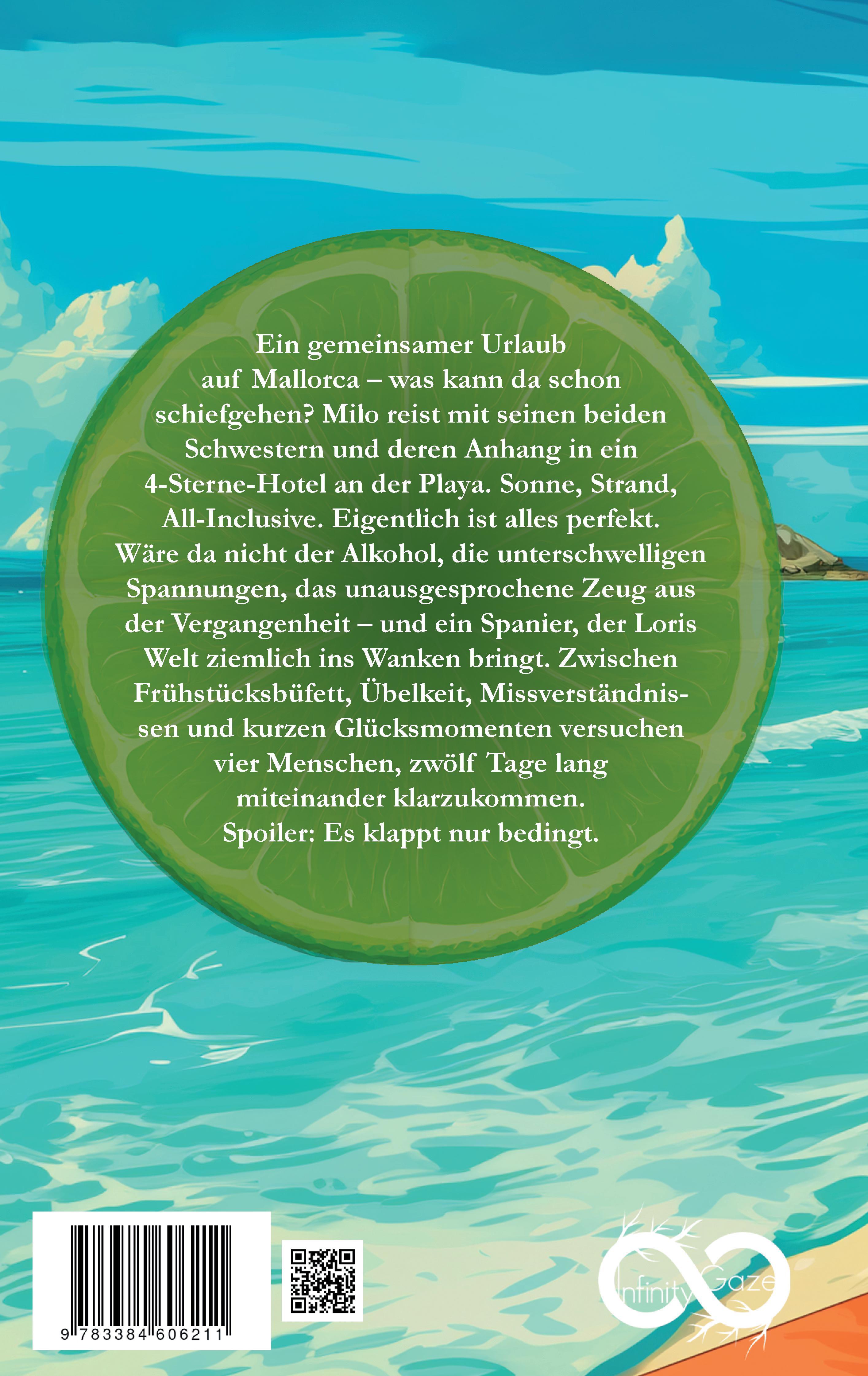 Ein gemeinsamer Urlaub auf Mallorca - was kann da schon schieflaufen? Milo reist mit seinen beiden Schwestern und deren Anhang in ein 4-Sterne-Hotel an der Playa. Sonne, Strand, All-Inclusive. Eigentlich ist alles perfekt.Wäre da nicht der Alkohol, die unterschwelligen Spannungen, das unausgesprochene Zeug aus der Vergangenheit - und ein Spanier, der Loris' Welt ziemlich ins Wanken bringt. Zwischen Frühstücksbüfett, Übelkeit, Missverständnissen und kurzen Glücksmomenten versuchen vier Menschen, zwölf Tage lang miteinander klarzukommen.Spoiler: Es klappt nur bedingt.