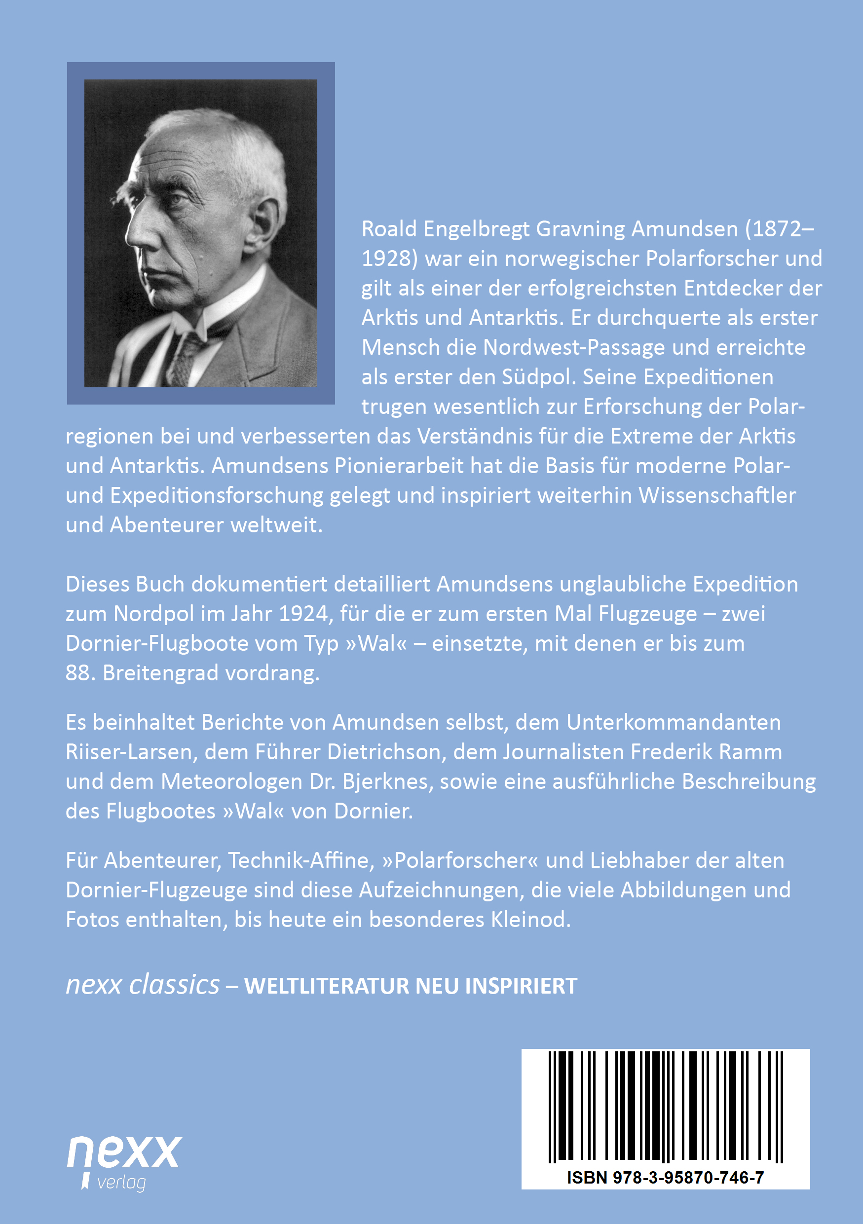 Es beinhaltet Berichte von Amundsen selbst, dem Unterkommandanten Riiser-Larsen, dem Führer Dietrichson, dem Journalisten Frederik Ramm und dem Meteorologen Dr. Bjerknes, sowie eine ausführliche Beschreibung des Flugbootes »Wal« von Dornier.