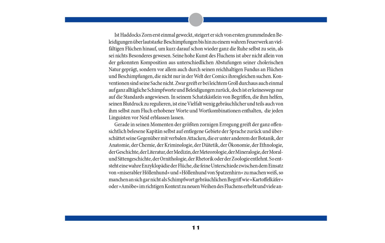 Dieser Band präsentiert die gesammelten Flüche des Kapitäns, untersucht ihre Bedeutung und setzt sie gekonnt humorvoll in den Kontext des jeweiligen Abenteuers. Begleitet von einer Fülle an Anekdoten, linguistischen Analysen und Hintergrundwissen zur deutschen Übersetzung ist dieses Buch ein Muss für Comic-Fans und Sprachliebhaber*innen.