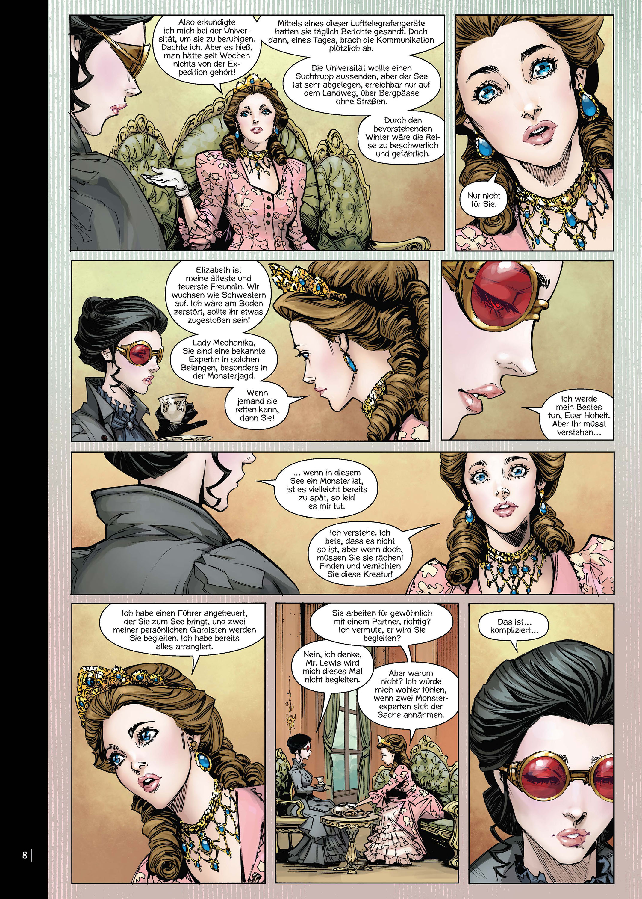 Erschütternde Visionen ihrer Vergangenheit suchen Lady Mechanika heim. Um ihnen zu entkommen, begibt sie sich auf eine gefährliche Expedition nach Sibirien. Dort wurde angeblich ein Drache gesichtet, der in den Tiefen eines uralten Sees lebt. Ein lohnendes Ziel für eine riskante Jagd nicht nur in Lady Mechanikas Augen.