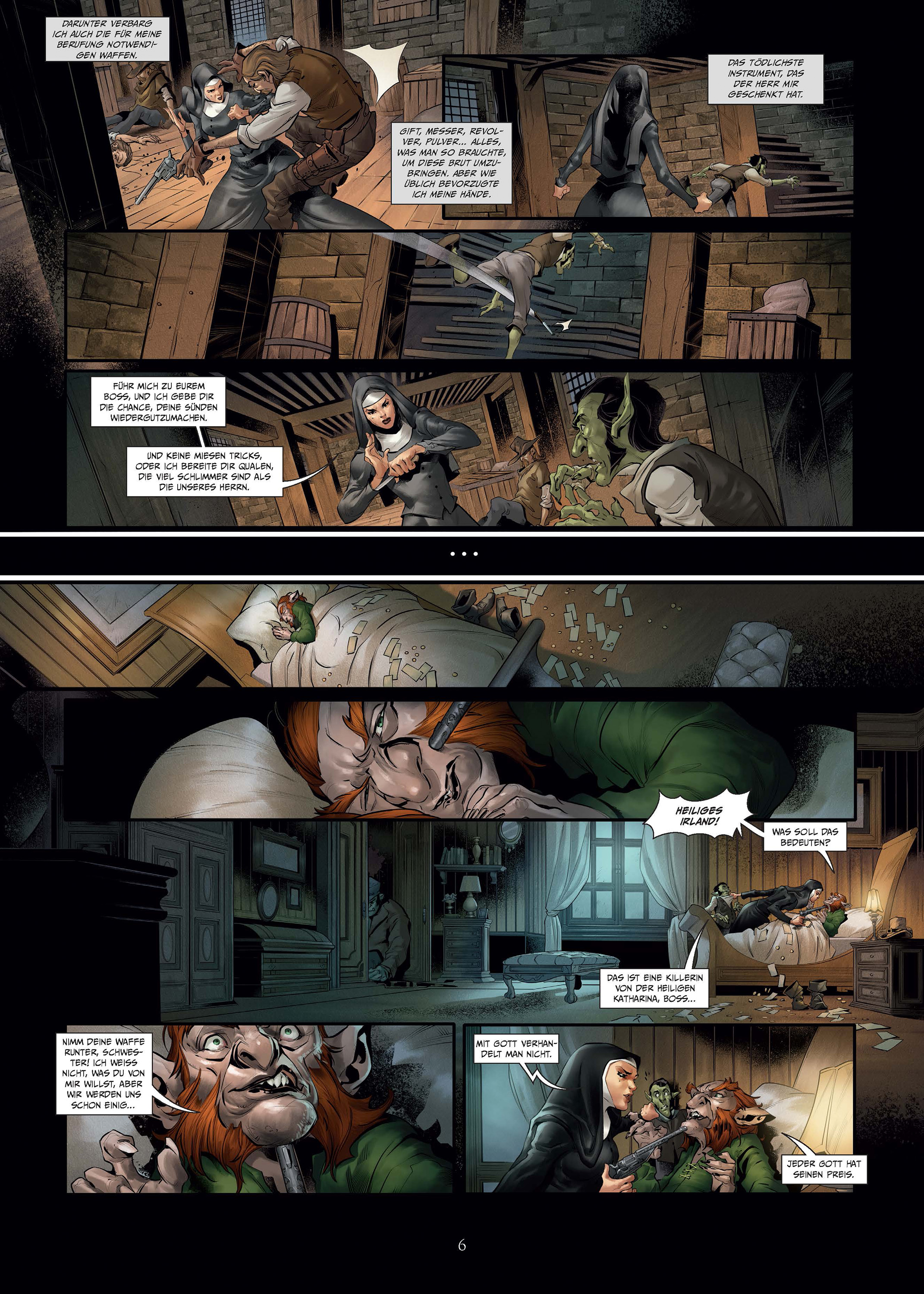 Schwester M. legt ihre Ordenskleidung niemals ab aus gutem Grund, denn ihre mit Eisenplatten gefütterte Kutte ist eine regelrechte Rüstung, unter der sie ihre Revolver verbirgt. Denn Schwester M. ist keine dieser großmäuligen Revolverheldinnen, sie ist eine Killerin, ein Racheengel, den die Kirche entsendet, um die Sache Christi im Wilden Westen zu verteidigen. Ob Ork-Kriegsherr oder Elfenjäger: Schwester M. stellt jedes ihrer Ziele kalt, und sie versagt nie. Doch ihre nächste heilige Mission ist zugleich ihre schwierigste: Sie muss den Bankier töten, den reichsten Mann der Vereinigten Staaten. Einen Mann, der den Zug, in dem er lebt, nie verlässt.