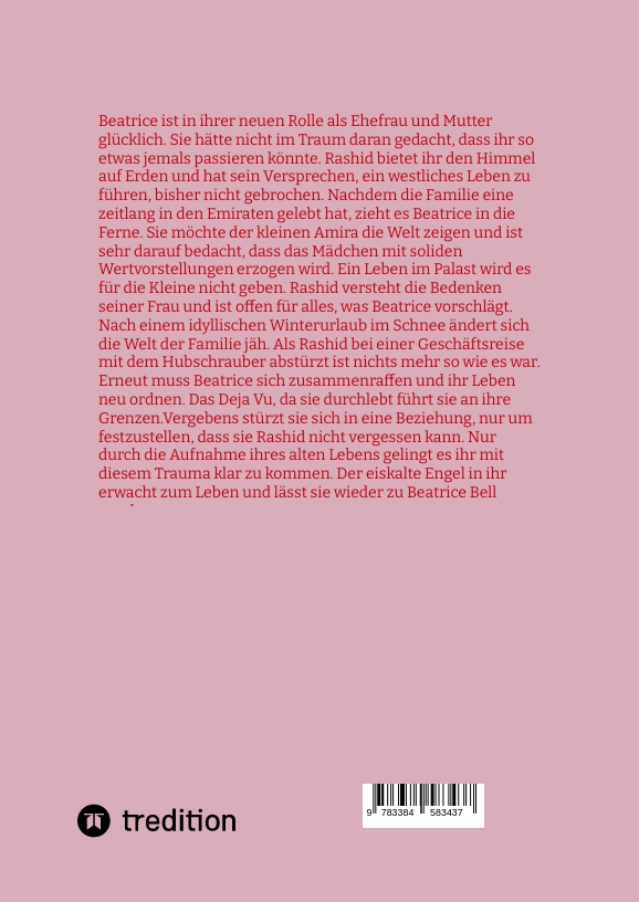 Das Buch ist der zweite Teil von "Eiskalter Engel". Die Geschichte der Beatrice Bell geht weiter. Nachdem sie Rashid geheiratet und ihm eine Tochter geschenkt hat, glaubt sie ihr Glück und ihre Erfüllung gefunden zu haben. Als Rashid bei einer Geschäftsreise mit seinem Helikopter abstürzt ist nichts mehr so, wie es war. Beatrice erlebt ein klassisches Deja Vu, als sie erfährt, dass ihr Mann vielleicht überlebt hat und sich nicht bei ihr meldet. Sie flüchtet sich in ihr früheres Leben. Selbst der Versuch eine neue Beziehung mit ihrer alten Liebe Nico einzugehen, scheitert, denn ihr Herz ist bei Rashid.
