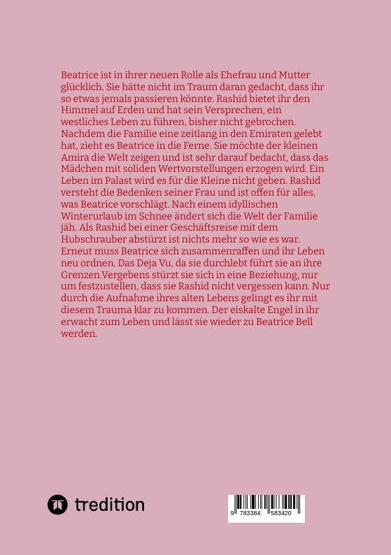 Das Buch ist der zweite Teil von "Eiskalter Engel". Die Geschichte der Beatrice Bell geht weiter. Nachdem sie Rashid geheiratet und ihm eine Tochter geschenkt hat, glaubt sie ihr Glück und ihre Erfüllung gefunden zu haben. Als Rashid bei einer Geschäftsreise mit seinem Helikopter abstürzt ist nichts mehr so, wie es war. Beatrice erlebt ein klassisches Deja Vu, als sie erfährt, dass ihr Mann vielleicht überlebt hat und sich nicht bei ihr meldet. Sie flüchtet sich in ihr früheres Leben. Selbst der Versuch eine neue Beziehung mit ihrer alten Liebe Nico einzugehen, scheitert, denn ihr Herz ist bei Rashid.