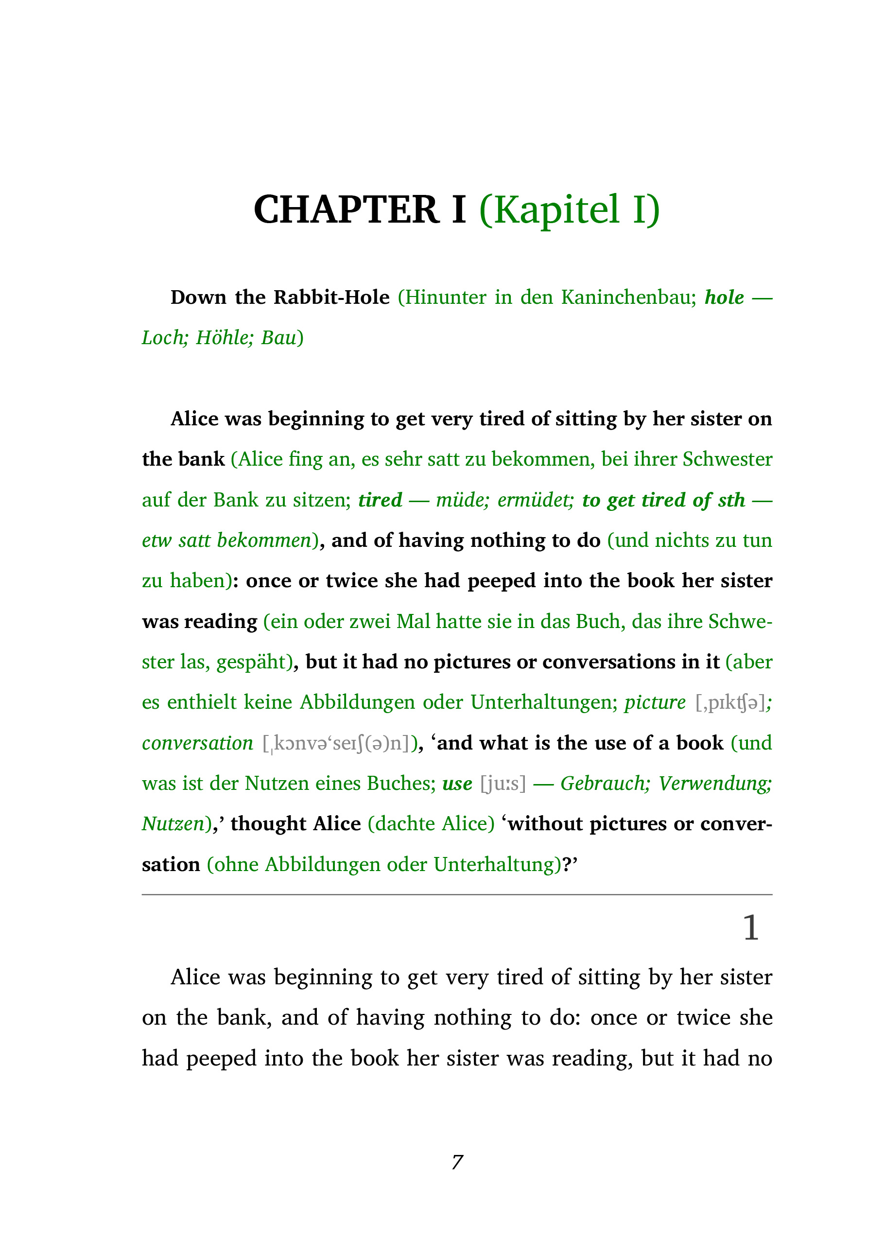Alice in Wonderland - Ein fantastischer Klassiker mit der Frank-Lesemethode (A2-B1)Originaltext. Ungekürzt. Verständlich. Frank-Lesemethode.Leseprobe: https://easyoriginal.com/leseproben/DE24.pdf Ein sprechendes Kaninchen, schrumpfende Tränke, verrückte Teepartys und eine Königin, die Köpfe rollen lässt - Lewis Carrolls Alice in Wonderland ist ein zeitloses Abenteuer voller Sprachwitz, Fantasie und absurder Logik. Jetzt können Sie dieses Meisterwerk im englischen Original lesen - auch mit noch nicht ganz fortgeschrittenem Niveau.Diese Ausgabe enthält den vollständigen Originaltext - nicht vereinfacht, nicht gekürzt, aber durch die Frank-Lesemethode für Lernende auf A2-B1-Niveau leicht verständlich gemacht.Die Frank-Lesemethode kombiniert authentisches Lesen mit unmittelbarem Verstehen:Direkt im Text eingefügte Übersetzungen und Erklärungen sorgen dafür, dass Sie auch komplexere oder ungewohnte Passagen ohne Unterbrechung erfassen. So vertiefen Sie Grammatik, Vokabeln und Sprachgefühl - intuitiv und mit Freude am Lesen.Ein ideales Buch für alle, die in die englische Sprache eintauchen und dabei ein fantasievolles, kluges und verspieltes Werk der Weltliteratur entdecken möchten.Originaltext. Ungekürzt. Verständlich. Frank-Lesemethode.Mit kostenlosem Hörbuch zum Mitlesen und Trainieren des Hörverstehens.