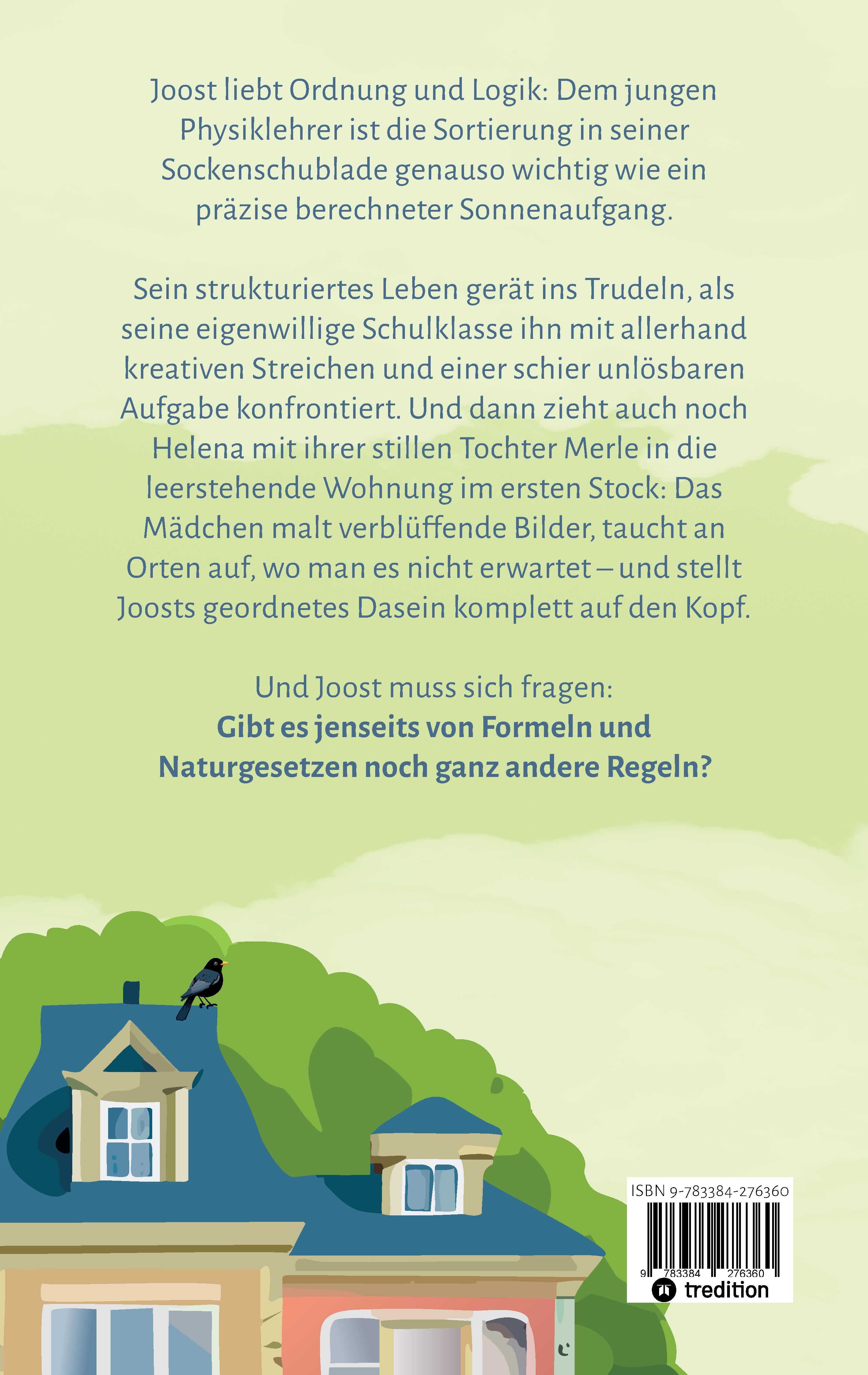 Joost liebt Ordnung und Logik: Dem jungen Physiklehrer ist die Sortierung in seiner Sockenschublade genauso wichtig wie ein präzise berechneter Sonnenaufgang.Sein strukturiertes Leben gerät ins Trudeln, als seine eigenwillige Schulklasse ihn mit allerhand kreativen Streichen und einer schier unlösbaren Aufgabe konfrontiert. Und dann zieht auch noch Helena mit ihrer stillen Tochter Merle in die leerstehende Wohnung im ersten Stock: Das Mädchen malt verblüffende Bilder, taucht an Orten auf, wo man es nicht erwartet - und stellt Joosts geordnetes Dasein komplett auf den Kopf.Und Joost muss sich fragen: Gibt es jenseits von Formeln und Naturgesetzen noch ganz andere Regeln?