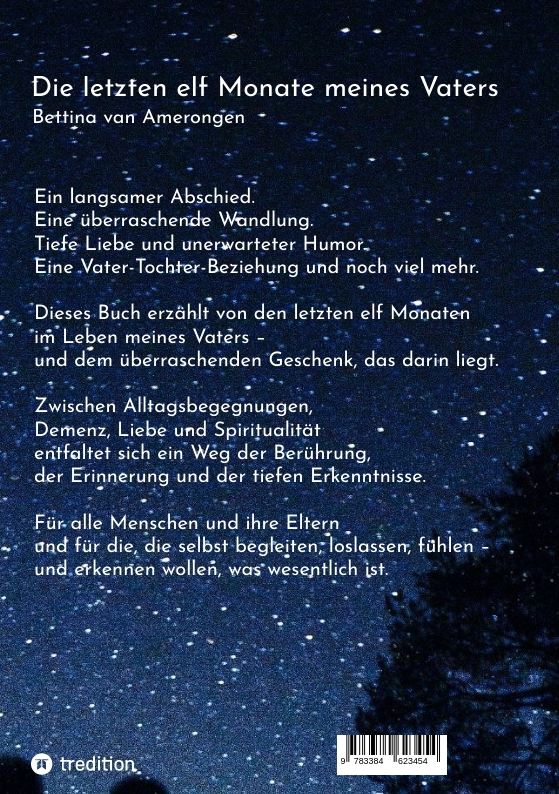 | Schlagworte | Abschied • Bedingungslose Selbstliebe • Beziehung zum Sterben • Demenz • Familiendynamiken • Heilung • Humor auf dem letzten Weg • Spiritualität • Transformation • Vater-Tochter-Beziehung |