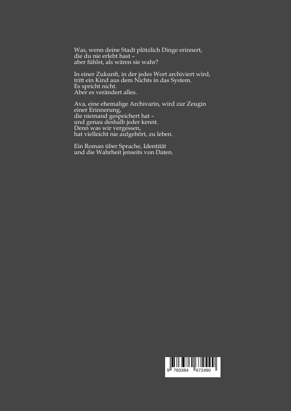 | Schlagworte | Archivgesellschaft • Erinnerung • Identität • Menschlichkeit vs. Kontrolle • Poetische Dystopie |