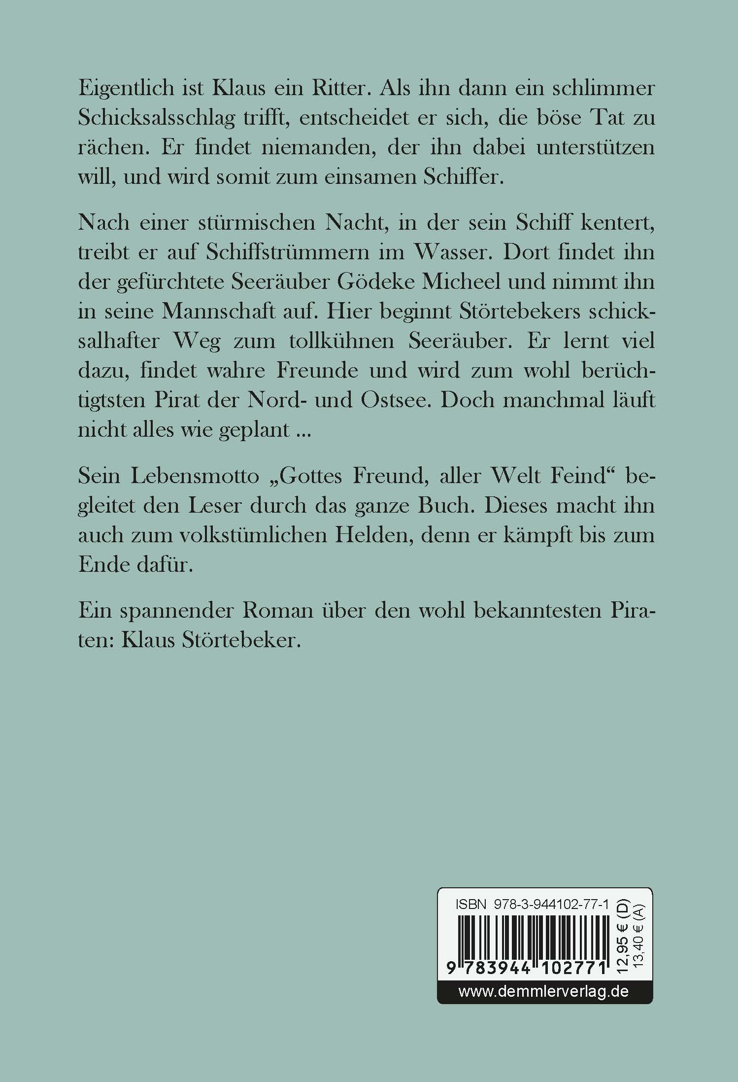 Nach einer stürmischen Nacht, in der sein Schiff kentert, treibt er auf Schiffstrümmern im Wasser. Dort findet ihn der gefürchtete Seeräuber Gödeke Micheel und nimmt ihn in seine Mannschaft auf. Hier beginnt Störtebekers schicksalhafter Weg zum tollkühnen Seeräuber. Er lernt viel dazu, findet wahre Freunde und wird zum wohl berüchtigtsten Pirat der Nord- und Ostsee. Doch manchmal läuft nicht alles wie geplant … Sein Lebensmotto „Gottes Freund, aller Welt Feind“ begleitet den Leser durch das ganze Buch. Dieses macht ihn auch zum volkstümlichen Helden, denn er kämpft bis zum Ende dafür.