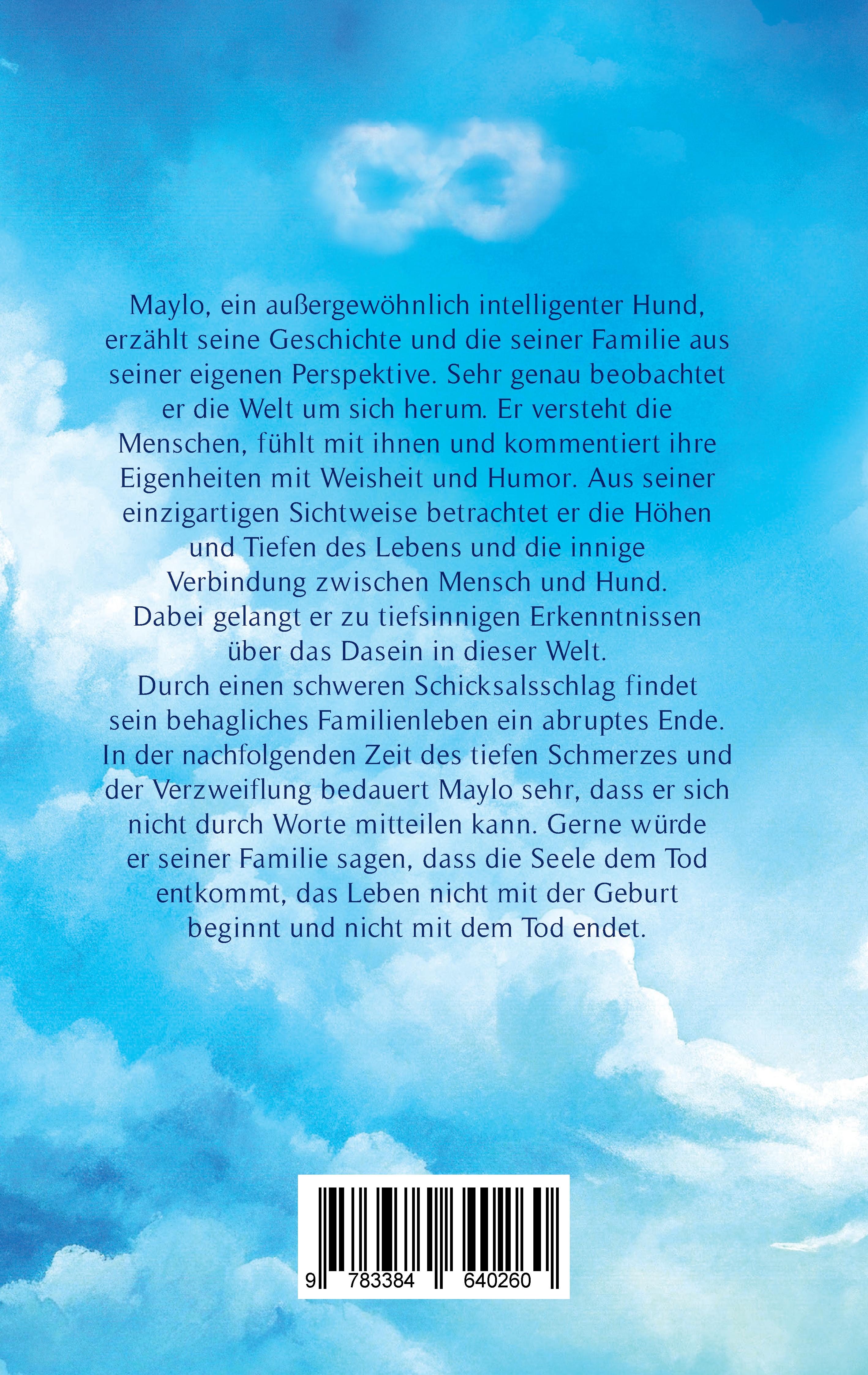 Maylo, ein außergewöhnlich intelligenter Hund, erzählt seine Geschichte und die seiner Familie aus seiner eigenen Perspektive. Sehr genau beobachtet er die Welt um sich herum. Er versteht die Menschen, fühlt mit ihnen, kommentiert ihr Verhalten, ihre Vorlieben und Schwächen. Durch die Augen eines weisen Hundes betrachtet er die Höhen und Tiefen des Lebens, die tiefe Verbindung zwischen Mensch und Hund und gelangt zu der Erkenntnis, dass das Leben immer weitergeht.Durch einen schweren Schicksalsschlag findet sein behagliches Familienleben ein abruptes Ende. In der nachfolgenden Zeit des tiefen Schmerzes und der Verzweiflung bedauert Maylo sehr, dass er sich nicht durch Worte mitteilen kann. Gerne würde er seiner Familie sagen, dass die Seele dem Tod entkommt, das Leben nicht mit der Geburt beginnt und nicht mit dem Tod endet.