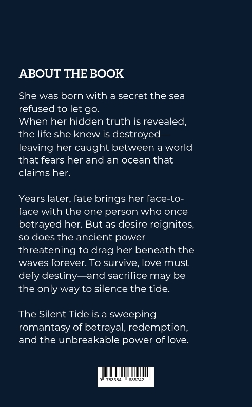 The Silent Tide is a sweeping romantasy about a young woman bound to the sea by a dangerous secret. When her hidden truth is revealed, she is forced into a struggle between destiny and desire. As love rekindles with someone from her past, she must face betrayal, sacrifice, and a deadly curse that could cost her everything.