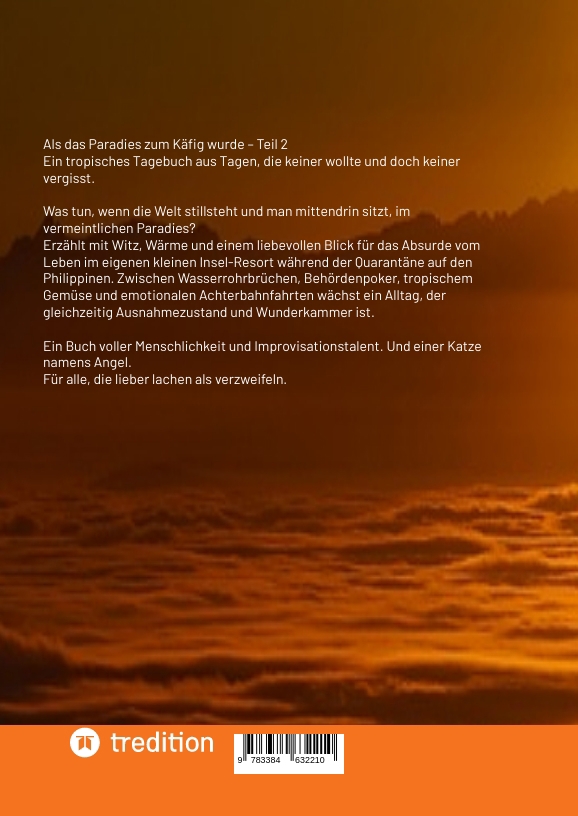 Warum Tine dieses Buch schreiben konnte? Tine lebt seit Jahren abwechselnd in Deutschland und auf den Philippinen. Zusammen mit ihrem Mann hat sie in ein kleines Resort investiert. Mitten im Paradies, aber mit ganz normalen Herausforderungen. Als der Lockdown kam, verwandelte sich das Traumziel plötzlich in einen Käfig. Statt Urlaubsgästen gab es plötzlich nur noch Herausforderungen, Improvisationen und ganz viel Ungewissheit. Mit viel Humor, Herz und einem offenen Blick hat Tine festgehalten, wie sie und ihr Mann diese Ausnahmesituation gemeistert haben. Sie erzählt ehrlich von den kleinen Katastrophen, den großen Fragen und den Momenten, die Mut und Zusammenhalt brauchten. Dieses Buch entstand aus dem echten Leben, aus Erfahrung und der festen Überzeugung, dass man auch in schwierigen Zeiten mit Humor und Menschlichkeit weiterkommt.