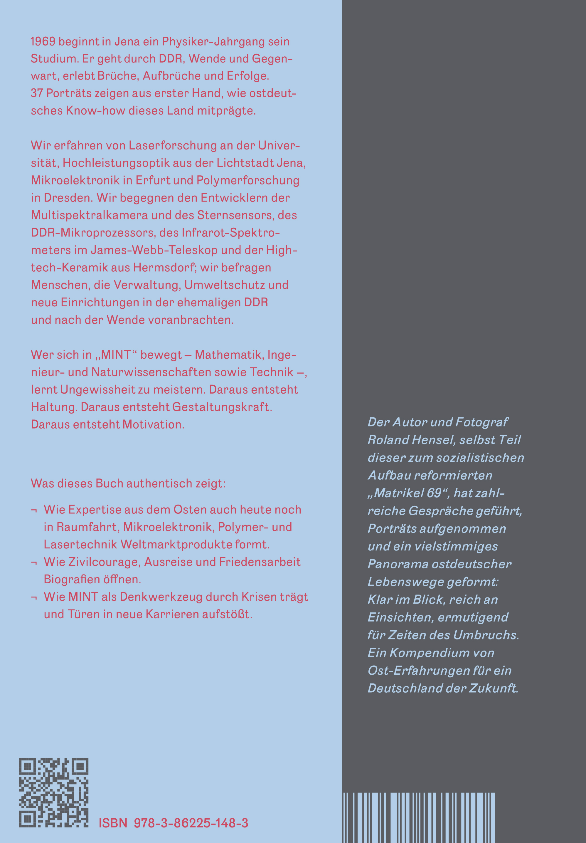 Der Autor und Fotograf Roland Hensel, selbst Teil dieser zum sozialistischen Aufbau reformierten "Matrikel 69", hat zahlreiche Gespräche geführt, Porträts aufgenommen und ein vielstimmiges Panorama ostdeutscher Lebenswege geformt: Klar im Blick, reich an Einsichten, ermutigend für Zeiten des Umbruchs. Ein Kompendium von Ost-Erfahrungen für ein Deutschland der Zukunft.