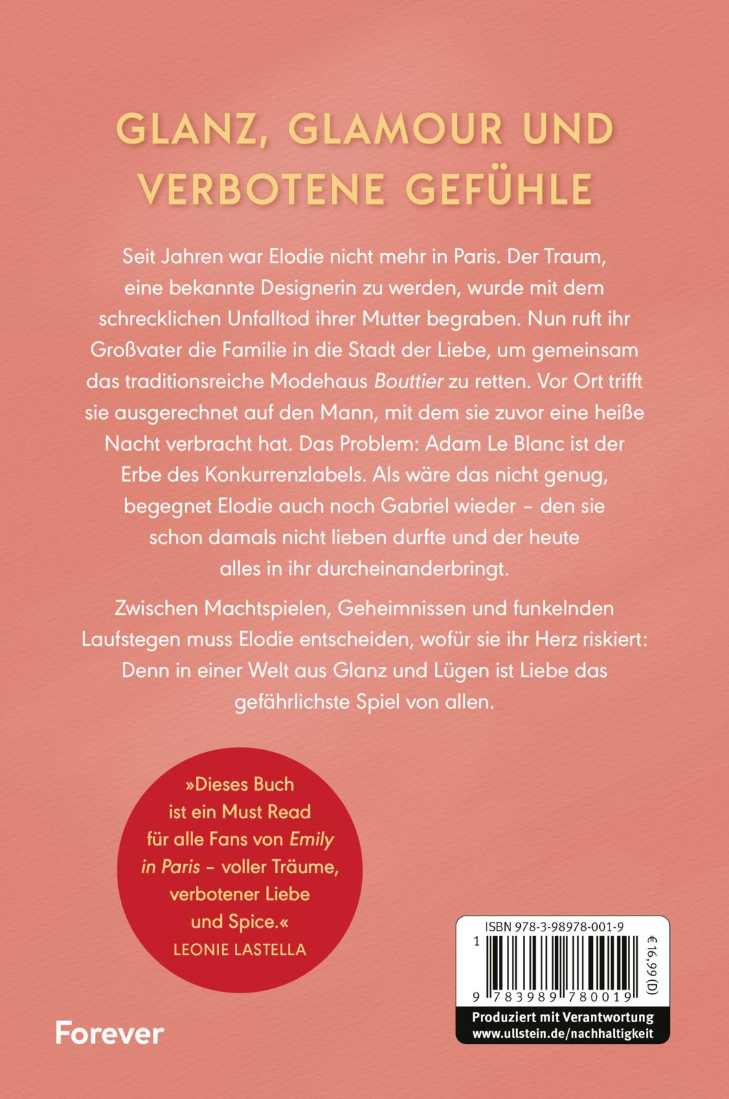 Seit Jahren war Elodie nicht mehr in Paris. Der Traum, eine bekannte Designerin zu werden, wurde mit dem schrecklichen Unfalltod ihrer Mutter begraben. Nun ruft ihr Großvater die Familie in die Stadt der Liebe, um gemeinsam das traditionsreiche Modehaus Bouttier zu retten. Vor Ort trifft sie ausgerechnet auf den Mann, mit dem sie zuvor eine heiße Nacht verbracht hat: Adam Le Blanc, den Erben des Konkurrenzlabel. Und als wäre das nicht genug, begegnet Elodie auch noch Gabriel wieder - den sie schon damals nicht lieben durfte und der heute alles in ihr durcheinanderbringt.