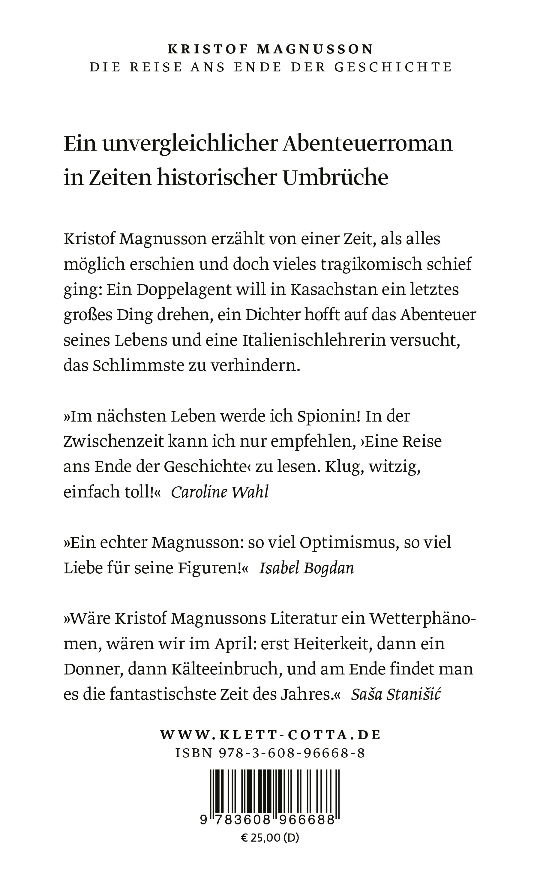 Der große neue Roman von Kristof Magnusson erzählt von einer Zeit, als alles möglich erschien und doch vieles tragikomisch schief ging: Ein Doppelagent will in Kasachstan ein letztes großes Ding drehen, ein Dichter hofft auf das Abenteuer seines Lebens und eine Italienischlehrerin versucht, das Schlimmste zu verhindern.