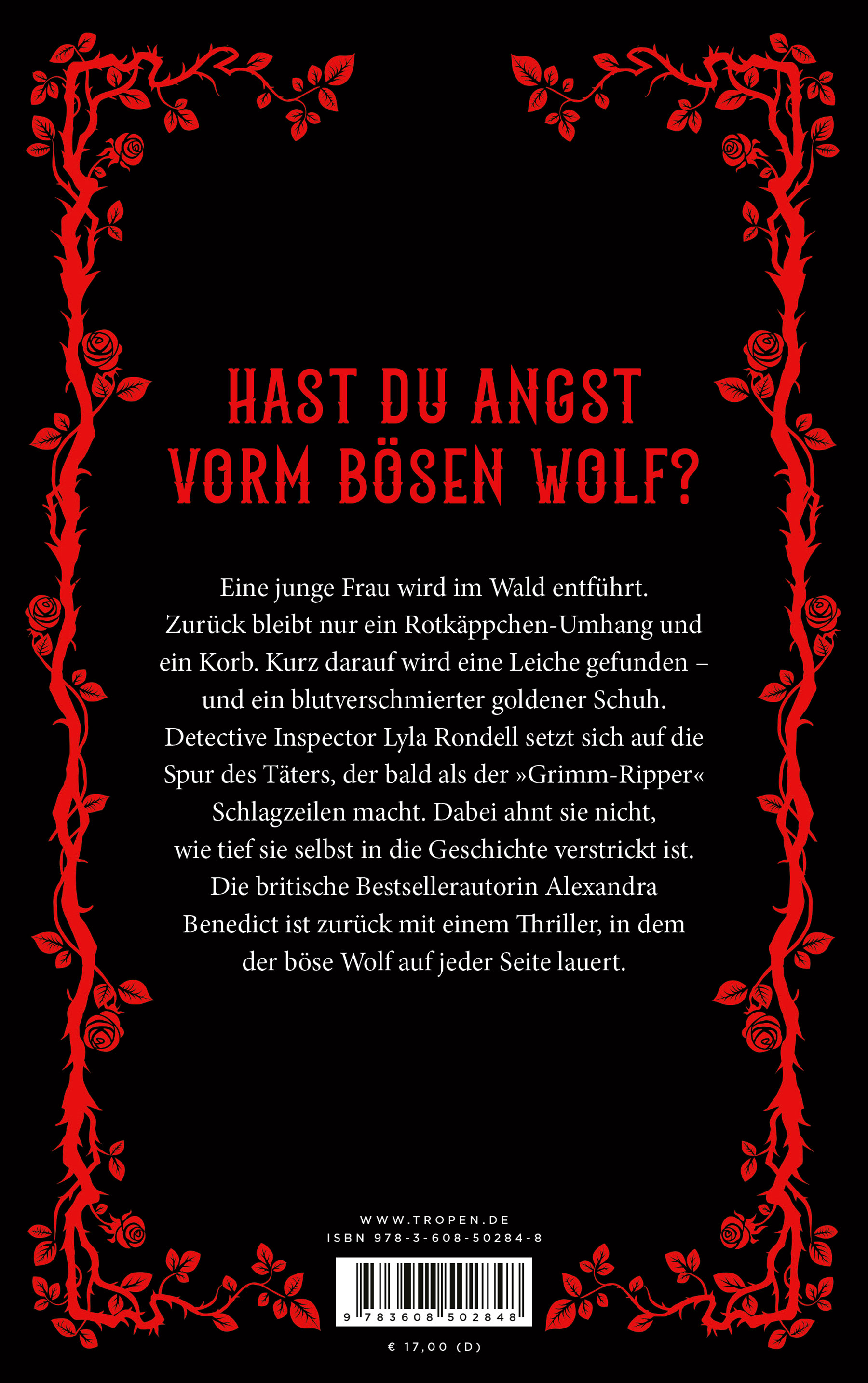 Ein Serienmörder inszeniert grausame Morde nach Grimms Märchen - und eine entführte Autorin muss sie schreiben, um zu überleben. Detective Lyla Rondell setzt sich auf die Spur des Täters. Doch je weiter sie ermittelt, desto mehr wird ihr bewusst, dass sie selbst nur eine Figur in einer Geschichte ist. Erfolgsautorin Alexandra Benedict ist zurück mit einem ausgeklügelten Thriller, in dem der böse Wolf auf jeder Seite lauert.