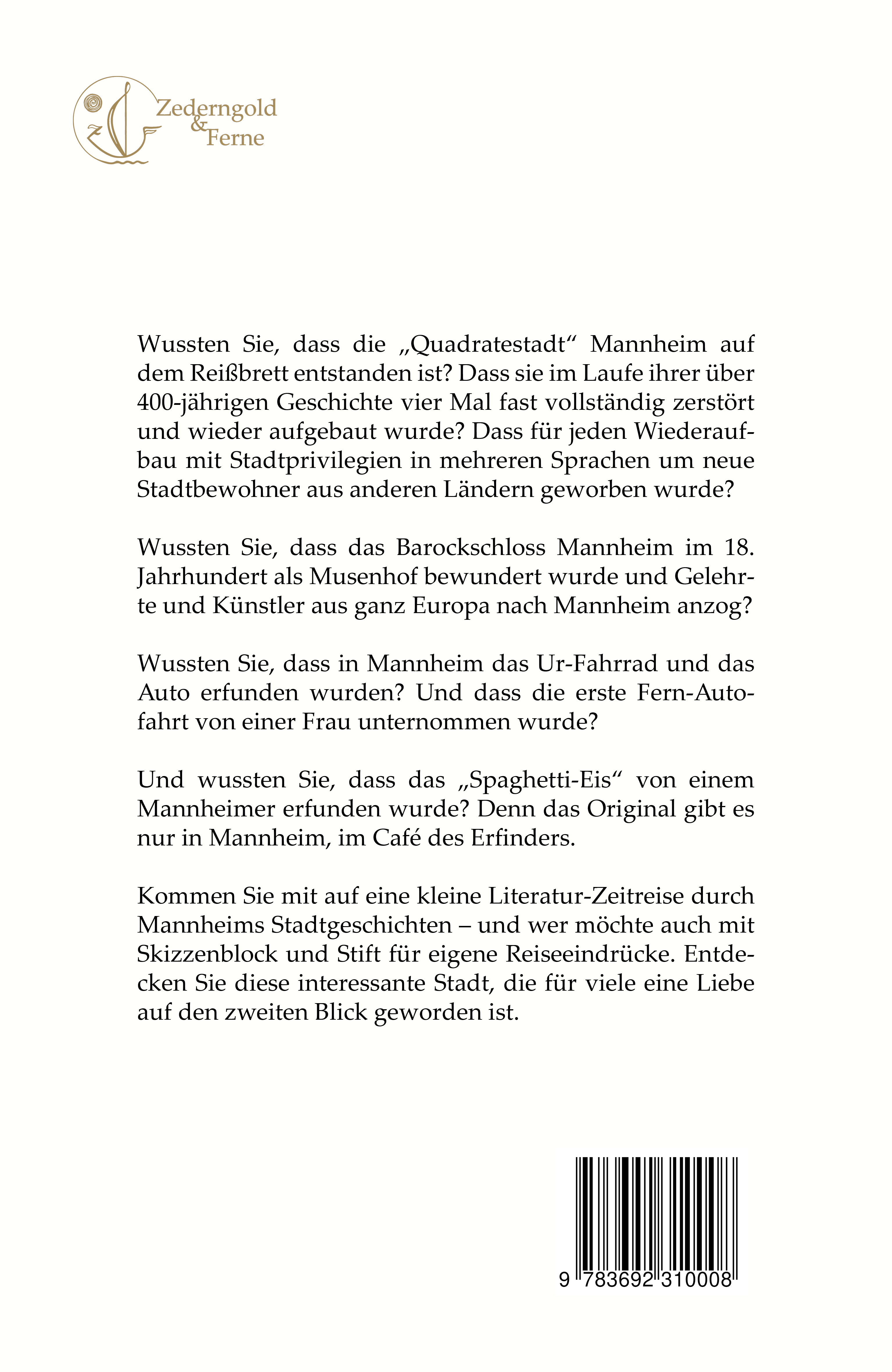 Kommen Sie mit auf eine kleine Literatur-Zeitreise durch Mannheims Stadtgeschichten - und wer möchte auch mit Skizzenblock und Stift für eigene Reiseeindrücke. Entdecken Sie diese interessante Stadt, die für viele eine Liebe auf den zweiten Blick geworden ist.