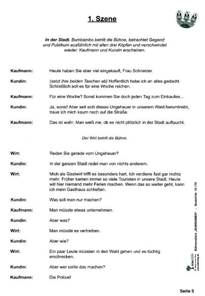 Ein kleines entzückendes Bühnenstück in 8 Szenen mit genauer Anleitung zum Bühnenbild und für die benötigten Kostüme. Viele Rollen, alle machen mit! Bumbambo ist ein sanftes und liebes Ungeheuer. Aber alle Kinder und auch viele Erwachsene haben Angst vor ihm. Es leidet sehr darunter. Bumbambo läuft davon, da die Menschen ihn nicht verstehen wollen. Aber am Ende gelingt es doch, dass alle Freunde werden.