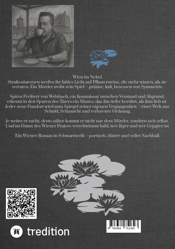 | Schlagworte | Film noir • Kommissar Spiros von Welsbach • Kurzgeschichtenzyklus • Melancholie • Philosophie & Moral • Psychologischer Krimi • Sprache & Stil • Symmetrie & Schuld • Wien • Wiener Atmosphäre |