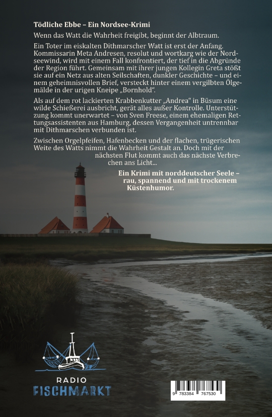 Tödliche Ebbe - Ein Nordsee-KrimiWenn das Watt die Wahrheit freigibt, beginnt der Albtraum.Ein Toter im eiskalten Dithmarscher Watt ist erst der Anfang.Kommissarin Meta Andresen, resolut und wortkarg wie der Nordseewind, wird mit einem Fall konfrontiert, der tief in die Abgründe der Region führt. Gemeinsam mit ihrer jungen Kollegin Greta stößt sie auf ein Netz aus alten Seilschaften, dunkler Geschichte - und einem geheimnisvollen Brief, versteckt hinter einem vergilbten Ölgemälde in der urigen Kneipe "Bornhold".Als auf dem rot lackierten Krabbenkutter "Andrea" in Büsum eine wilde Schießerei ausbricht, gerät alles außer Kontrolle. Unterstützung kommt unerwartet - von Sven Freese, einem ehemaligen Rettungsassistenten aus Hamburg, dessen Vergangenheit untrennbar mit Dithmarschen verbunden ist.Zwischen Orgelpfeifen, Hafenbecken und der flachen, trügerischen Weite des Watts nimmt die Wahrheit Gestalt an. Doch mit der nächsten Flut kommt auch das nächste Verbrechen ans Licht...Ein Krimi mit norddeutscher Seele - rau, spannend und mit trockenem Küstenhumor.