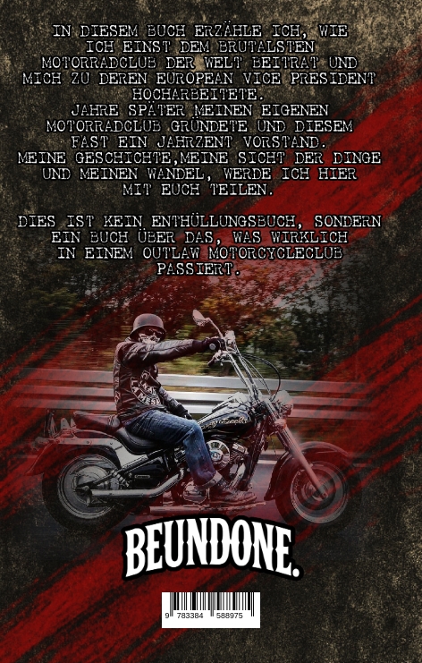Es geht um eine Reise durchs Leben, vom Kind in der DDR, das lernen musste, mit wenig viel zu machen, über die Bundeswehr, wo Disziplin auf erste Freiheit trifft, bis mitten hinein in eine Welt, die für viele nur aus Geschichten besteht: die Bikerszene.Es ist eine Geschichte über Zugehörigkeit, über Loyalität, über den Preis von Macht und über die Versuchung, sich in einer Bruderschaft zu verlieren, die Wärme verspricht, aber oft Kälte liefert.Sie erzählt von Aufstieg und Verantwortung, von Kameradschaft, die zu Familie wird und von Momenten, in denen man begreift, dass manche Entscheidungen Narben hinterlassen, die niemand sieht.Dieses Buch führt den Leser durch eine Szene, die fasziniert und gleichzeitig gefährlich ist. Es geht um Ehre, Stolz, Verrat und die Frage, wer man wird, wenn alles, woran man geglaubt hat, ins Wanken gerät.Und es geht darum, was von einem Menschen übrig bleibt, wenn der Rauch sich legt, die Maschinen verstummen und man sich selbst wieder in die Augen schauen muss.Ein persönlicher, schonungsloser Weg voller Höhen und Abgründe. Und irgendwann kommt der Moment, der alles verändert. Ein Wendepunkt, der mutiger ist als jede Schlägerei, lauter als jedes Motorrad und tiefer als jeder Verrat. Ein Moment, der den Blick auf die eigene Wahrheit freilegt und ein neues Kapitel erzwingt.Am Ende steht nicht die Zerstörung, sondern ein Neuanfang, hart erkämpft, ehrlich erzählt und überraschender, als man es von dieser Geschichte erwarten würde.