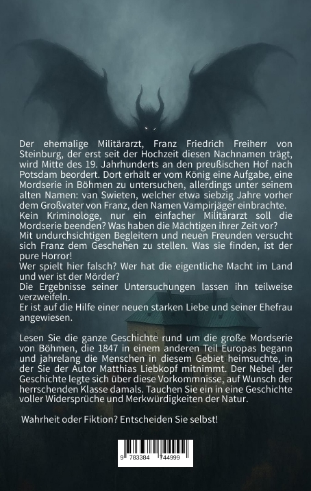 Um 1850 erschütterte eine nie zuvor dagewesene Mordserie die Gebiete Böhmen, Mähren und Teile von Sachsen. Ein Militärarzt mit berühmten Namen, den er seit seiner Hochzeit mit einer Adligen nicht mehr trägt, wird von den Herrschern seiner Zeit hinzugezogen. Er trifft in den betroffenen Gebieten auf bestialische Morde und unermessliches Leid der armen Bevölkerung. Eine Jagd nach dem Mörder beginnt im alten Preußen. Doch so einfach scheint der Sachverhalt nicht zu sein, zu viele Gegenspieler arbeiten teilweise gegen ihn.