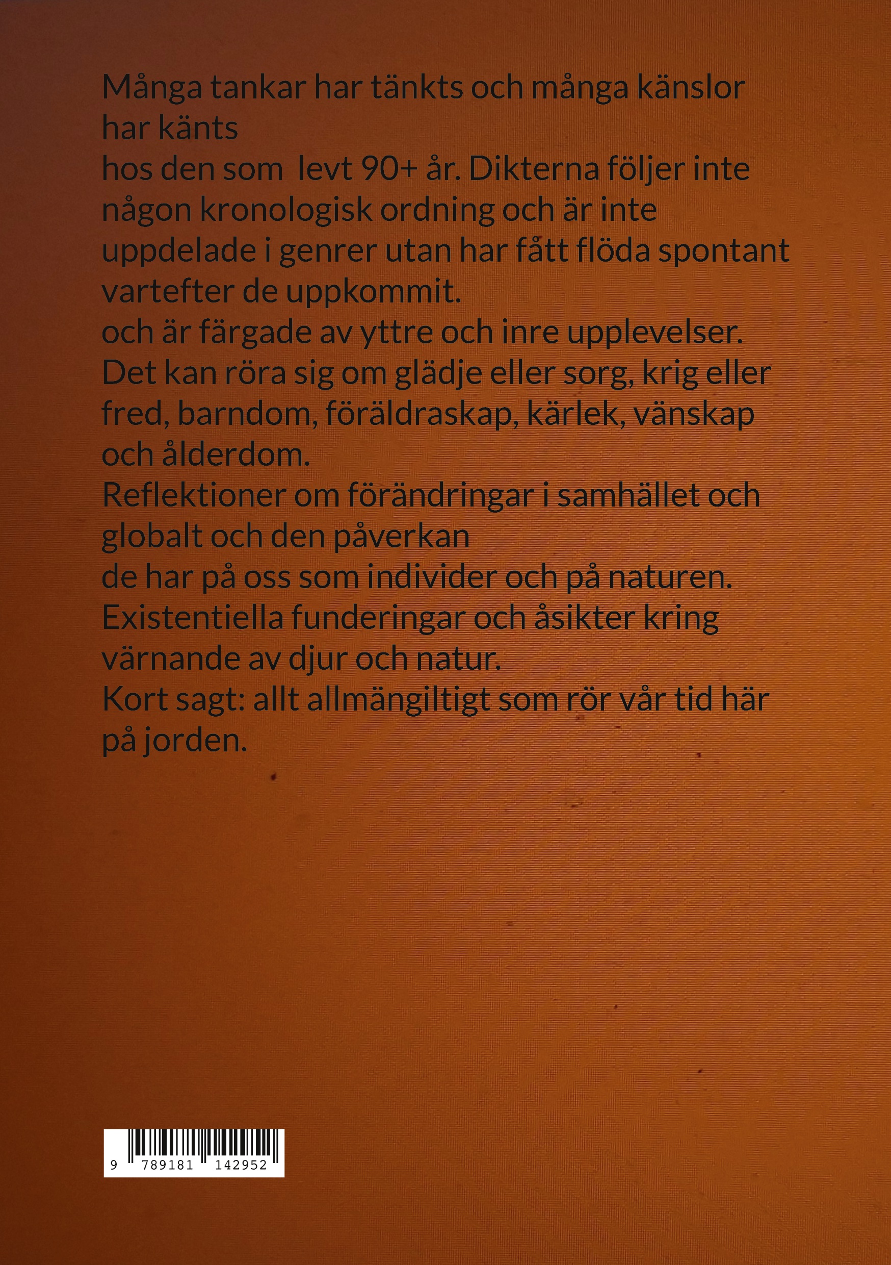 hos den som levt 90+ år. Dikterna följer inte någon kronologisk ordning och är inte