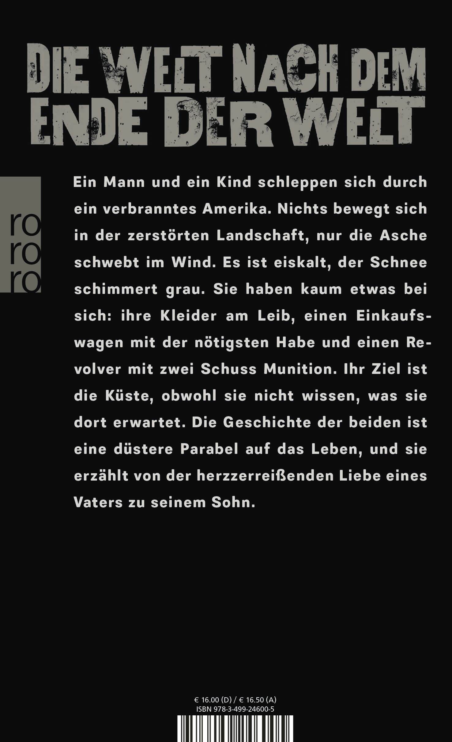 | Schlagworte | Amerikanische Literatur • Apokalypse • Apokalypse / Postapokalypse; Romane Erzählungen • Apokalypse / Postapokalypse; Romane/Erzählungen • Dystopie • Dystopie; Romane/Erzählungen • Dystopie; Roman/Erzählung • Endzeit • Endzeit Literatur • Existenzkampf • Film • Postapokalypse • postapokalyptische Literatur • Pulitzer-Preis • Pulitzer Prize • Road-Novel • Überleben • Überlebenskampf • Überlebenswillen • USA • US-Literatur • Überleben • Vater/Sohn • Vater-Sohn-Beziehung; Romane/Erzähl. • Vater-Sohn-Beziehung; Romane/Erzählungen • Weltuntergang • Zukunft |