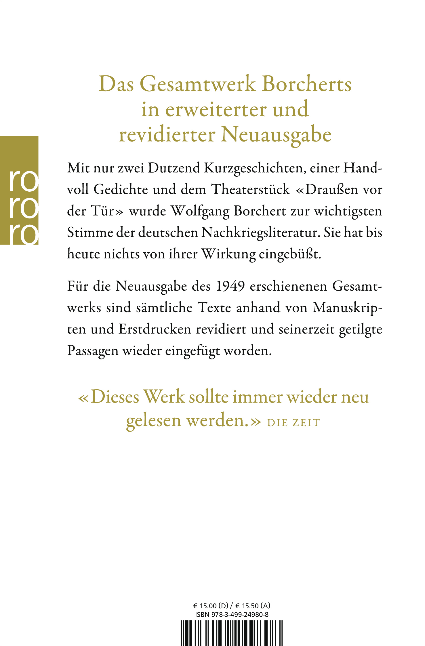 | Schlagworte | Antikriegsliteratur • Deutsche Klassiker • Deutsche Literatur • deutsche Nachkriegszeit • deutsche prosa • Gesamtwerk • Hamburg Literatur • heimkehrerliteratur • Klassiker • Literatur • Literatur der Nachkriegszeit • Literaturgeschichte • Moderne Klassiker • Nachkriegszeit • Neuausgabe • Trümmerliteratur |