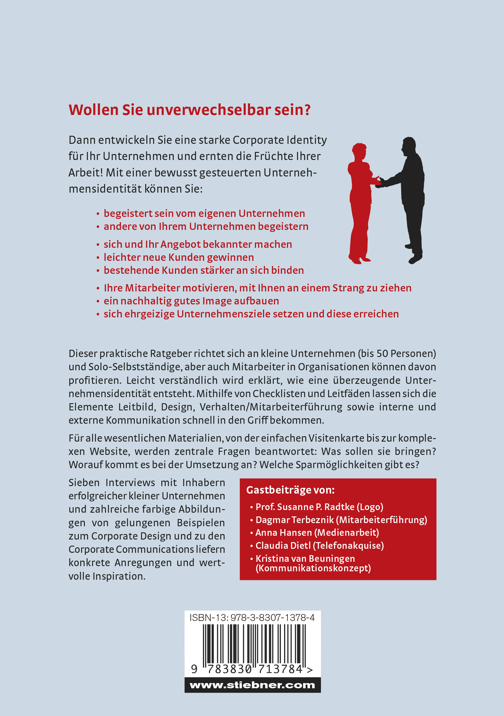 Vom theoretischen Überbau bis hin zur praktischen Umsetzung erläutert Autorin Anja Weinberger Schritt für Schritt den Prozess, der zur erfolgreichen Corporate Identity führt. Sie geht dabei auch ins letzte Detail und beantwortet für alle Marketingmateralien von der Visitenkarte bis hin zur Webseite die zentralen Fragen: Was bringt dieses? Worauf kommt es bei der Umsetzung an? Welche Ansätze gibt es und wie kann man diese kostengünstig einsetzen?