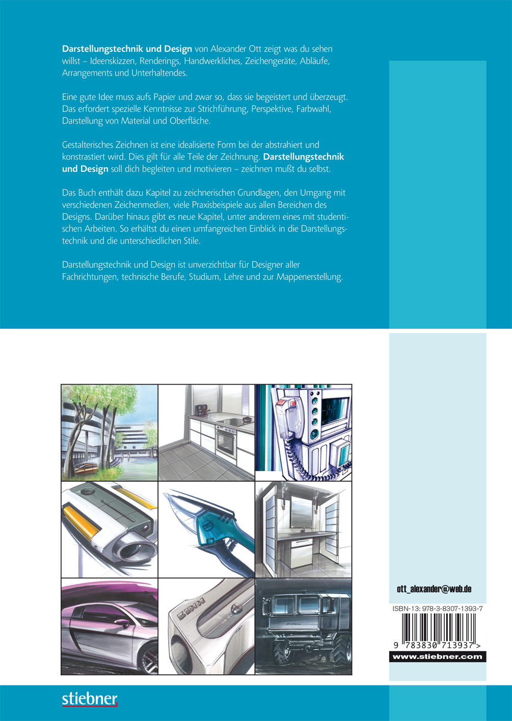 Darstellungstechnik und Design, der komplett überarbeitete und erweiterte Nachfolgeband des erfolgreichen Titels Darstellungstechnik, zeigt Ideenskizzen, Renderings, Handwerkliches, Zeichengeräte, Abläufe und Arrangements. Dazu enthält das Buch Kapitel zu zeichnerischen Grundlagen, den Umgang mit verschiedenen Zeichenmedien und viele Beispiele aus allen Bereichen des Designs: Ein unverzichtbarer und praxisnaher Ratgeber für Designer aller Fachrichtungen, technische Berufe, Studium, Lehre und zur Mappenerstellung.