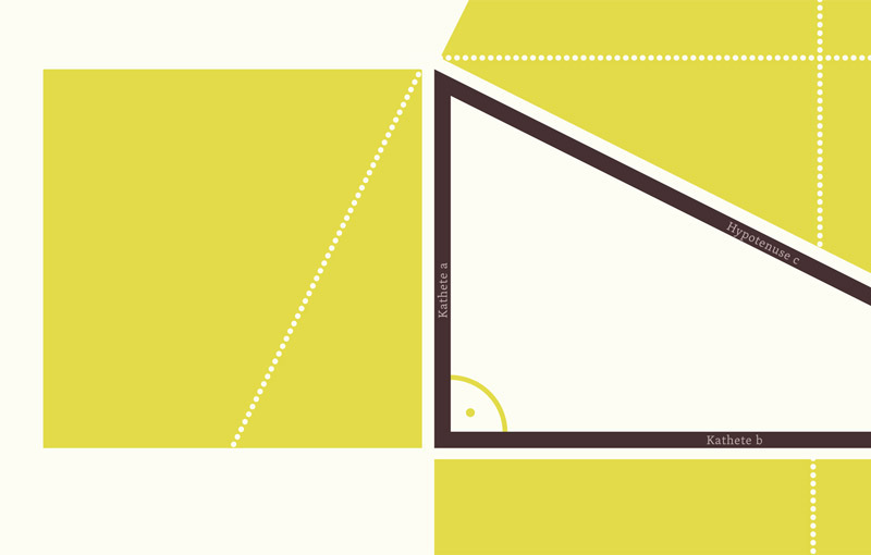 Der grundlegende Satz der euklidischen Geometrie wird so intuitiv verständlich. Das Prinzip dieser Herleitung ist groß und zentral widergegeben, begleitet von geometrischen Sonderfällen mit ganzzahligen Kathetenverhältnissen. Bei diesen Sonderfällen tritt die Geometrie besonders nachvollziehbar hervor, auch wenn das Prinzip für alle Seitenverhältnisse gültig ist.