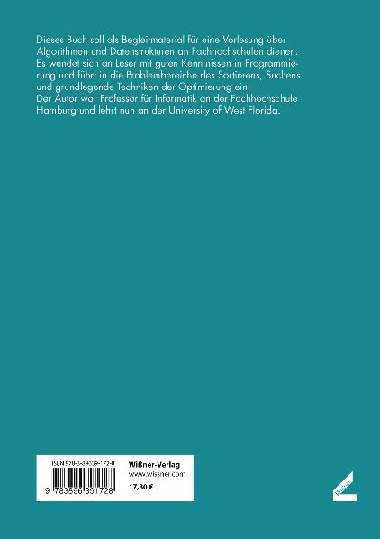 Dieses Buch soll als Begleitmaterial für eine Vorlesung über Algorithmen und Datenstrukturen an Fachhochschulen dienen. Es wendet sich an Leser mit guten Kenntnissen in Programmierung und führt in die Problembereiche des Sortierens, Suchens und grundlegende Techniken der Optimierung ein.