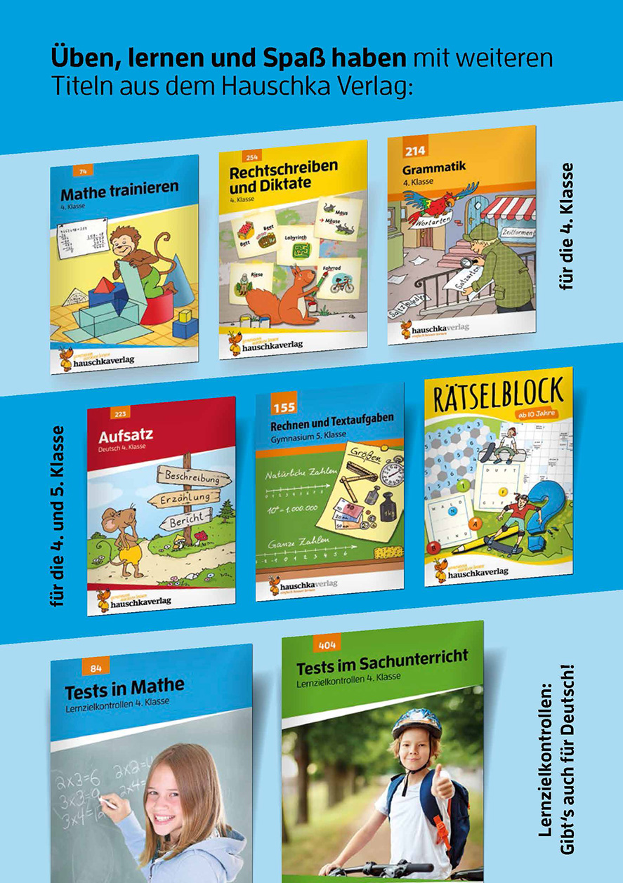 Die Übungshefte unserer Lernhilfen-Reihen decken die Fächer Deutsch, Mathe und Englisch ab. Ihre Inhalte umfassen Themen für die Grundschule, die unteren Klassen der weiterführenden Schulen und teilweise darüber hinaus. Jeder Titel greift dabei einen lehrplanrelevanten Teilbereich des Unterrichtsfachs heraus: zum Beispiel Textaufgaben oder Rechenfertigkeiten in Mathematik, Grammatik, Lesen, Rechtschreiben oder Aufsatz in Deutsch, Vokabeln oder Grammatik in Englisch. Merkkästen dienen dabei als Übersicht und Verständnishilfe, vielfältige Aufgabenformate ermöglichen es den Schülerinnen und Schülern, Lerninhalte anzuwenden und diese zu trainieren. Alle Lernhilfen sind von erfahrenen Pädagoginnen und Pädagogen entwickelt und mit Kindern getestet worden.