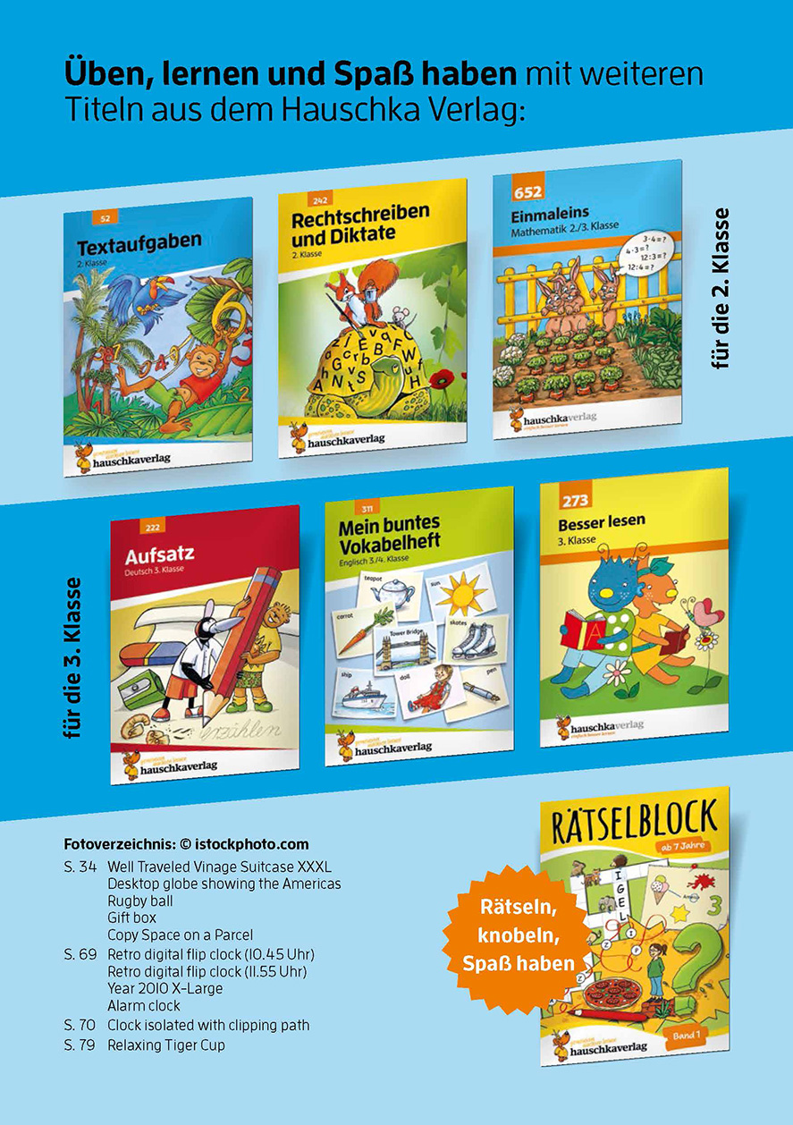 Die Hauschka-Redaktion arbeitet seit Jahrzehnten daran, Kinder mit Freude zum eigenständigen Lernen zu befähigen. Auch dieses Heft ist intuitiv verständlich, kindgerecht konzeptioniert, mit zahlreichen Schulkindern getestet und optimiert. Sie werden es selbst erleben: Ihr Kind wird Spaß beim Lernen haben.