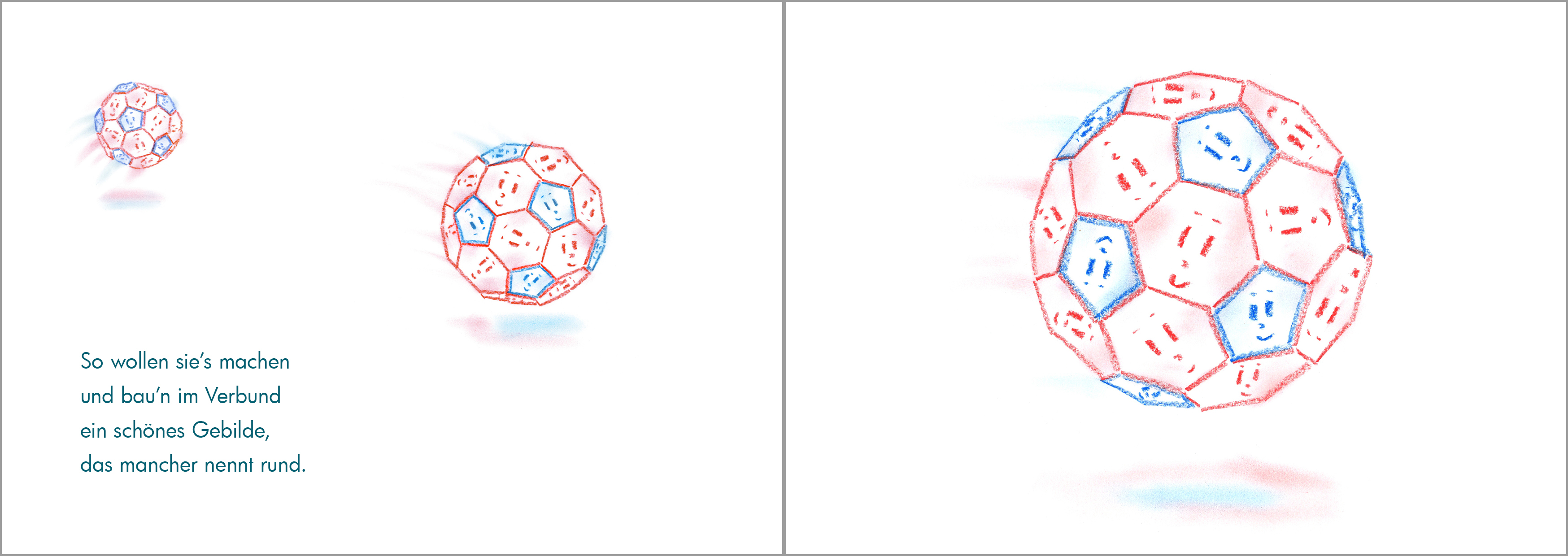 Dreiecke, Vierecke, Fünf- und Sechsecke machen einen Ausflug in die Welt der Geometrie und entdecken dabei viel Spannendes. Warum sind dabei zwischendurch die Fünfecke traurig und warum die Sechsecke? Mit guten Ideen und gegenseitiger Hilfe schaffen sie es, nicht nur Formen zu legen, sondern auch dreidimensionale Körper zu bilden.