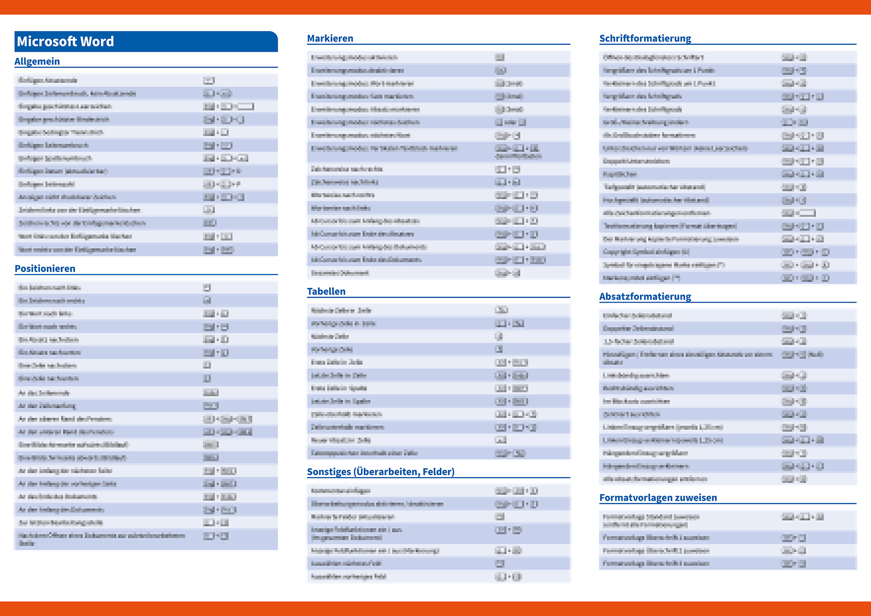 | Schlagworte | 2016 • 2019 • 2021 • Excel • Excel 2003; Lexikon/Nachschlagewerk • Excel 2007; Lexikon/Nachschlagewerk • Microsoft • Microsoft 365 • Office • Office 2013; Lexikon/Nachschlagewerk • Tastatur (Computer) • Tastenkombination • WORD • Word 2003; Lexikon/Nachschlagewerk • Word 2007; Lexikon/Nachschlagewerk |