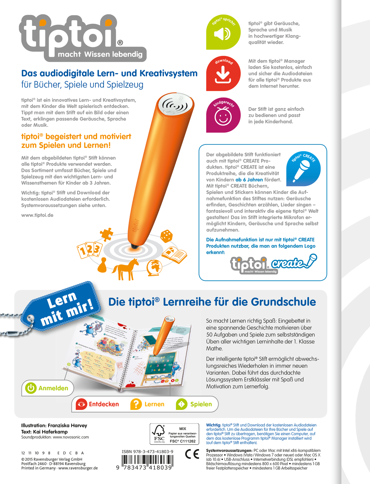 tiptoi-Stift nicht enthalten. Muss separat erworben werden.