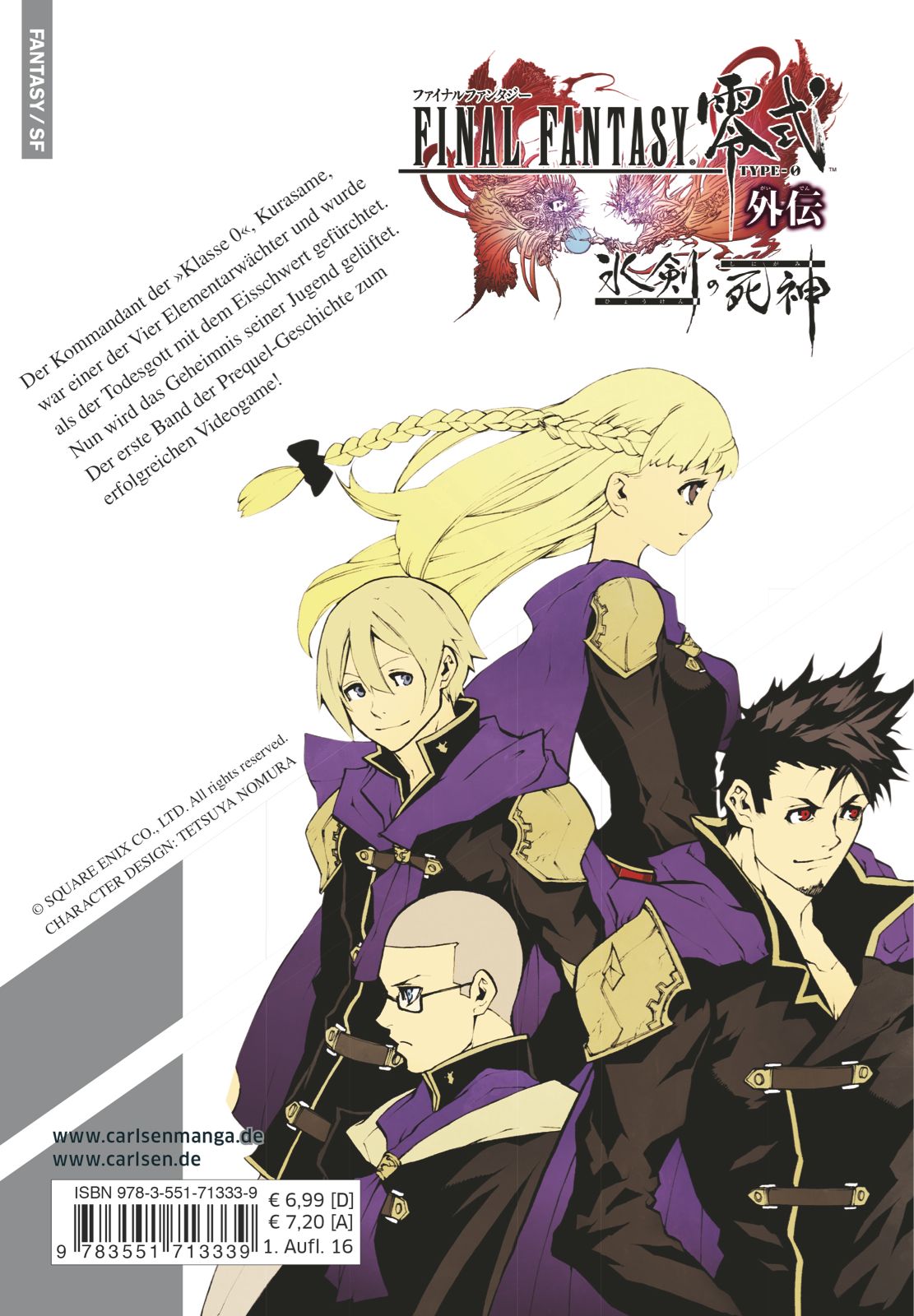 CARLSEN MANGA präsentiert mit »FINAL FANTASY TYPE-0 - Der Krieger mit dem Eisschwert« die Vorgeschichte des beliebten Action-RPGs. Die FINAL FANTASY-Reihe ist eine der erfolgreichsten Computer-Rollenspiele aller Zeiten und hat weltweit Milliarden von Spielern erreicht.Der Manga erzählt die Abenteuer um Krieger Kurasame und seine Ausbildungszeit zu einem der Vier Elementarwächtern - bevor er zum maskierten Kämpfer "Kalter Tod" wird...
