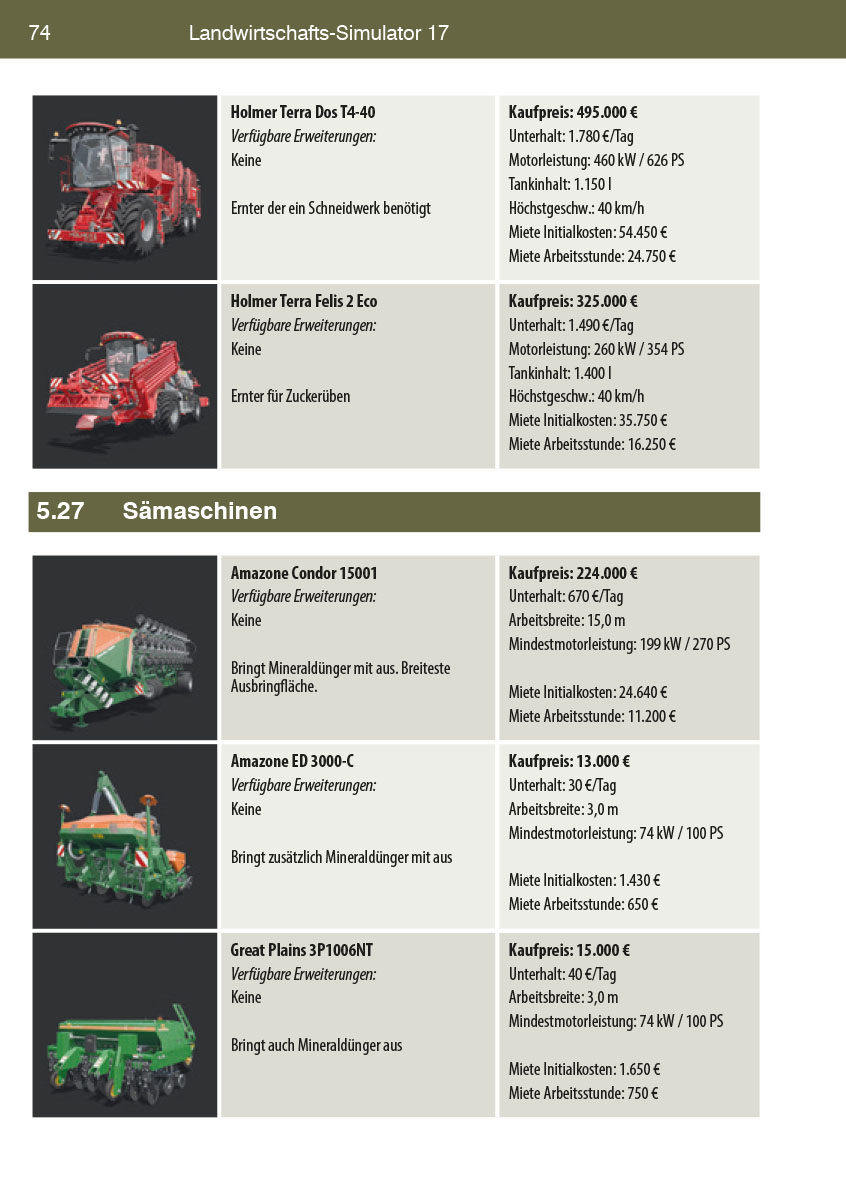 Mit dem Landwirtschaftssimulator 17 bzw. 2017 wird ein Kindheitstraum wahr. Es macht Spaß seine Felder zu bewirtschaften, Holz zu ernten und mit die modernsten Maschinen zu bedienen. Doch um das Spiel professionell zu steuern, sollte man mit Tastenkürzel arbeiten. Neben vielen praktischen Tastaturkürzeln - auch speziell für viele Maschinen und deren Zubehör - findest Du in diesem praktischen Buch auch allerhand Tipps und Tricks, damit das Spiel noch mehr Spaß macht! Wie erhalte ich mehr Geld, wie mehr Ressourcen? Wie erhöhe ich die Ladekapazität und das Tankvolumen meiner Fahrzeuge? Wie betreibe ich professionelle Holz- und Forstwirtschaft? Neben der Beantwortung dieser Fragen findest Du alle Maschinen, Traktoren und das dazu passende Zubehör mit den Leistungsdaten in einer praktischen Übersicht.