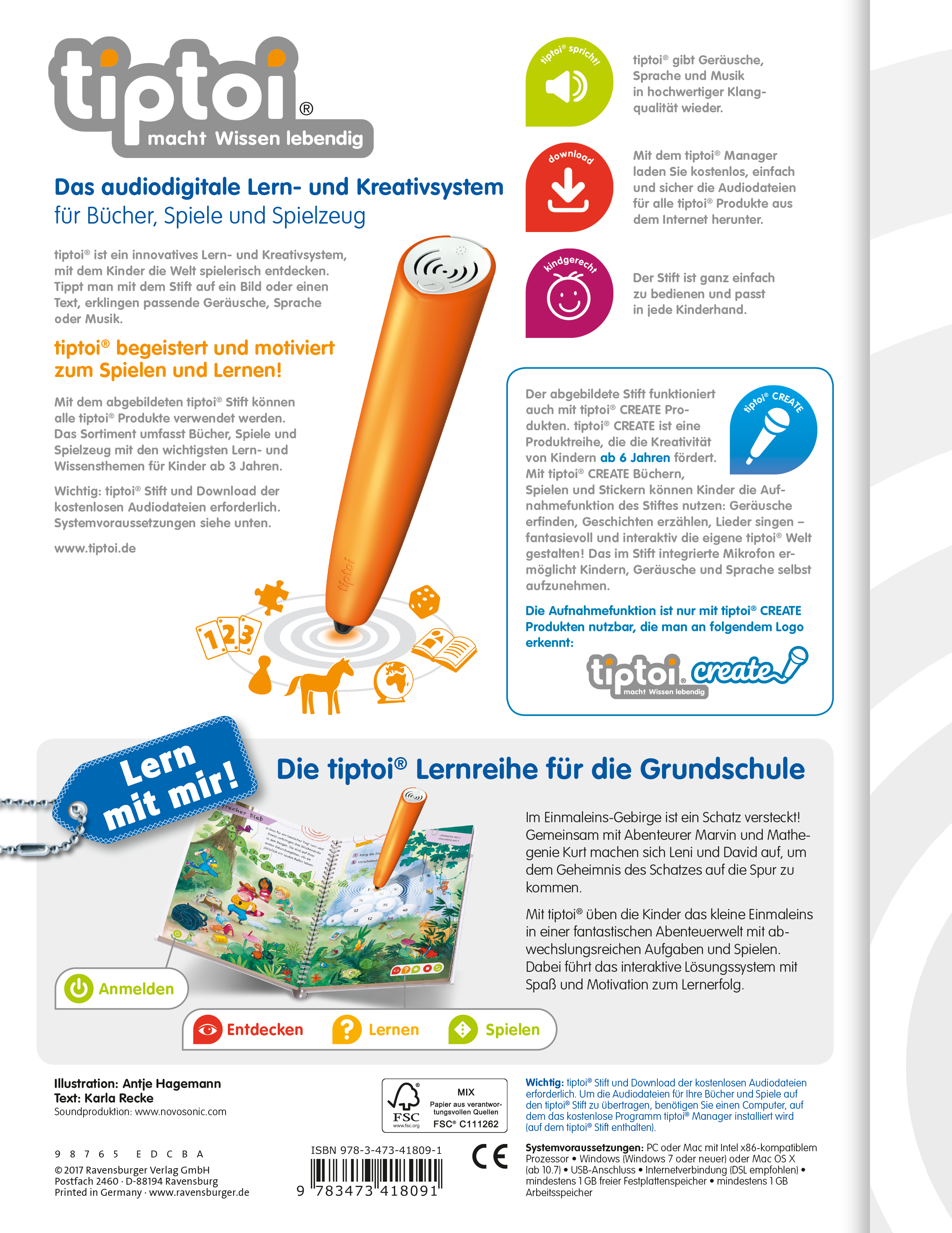 tiptoi-Stift nicht enthalten. Muss separat erworben werden.