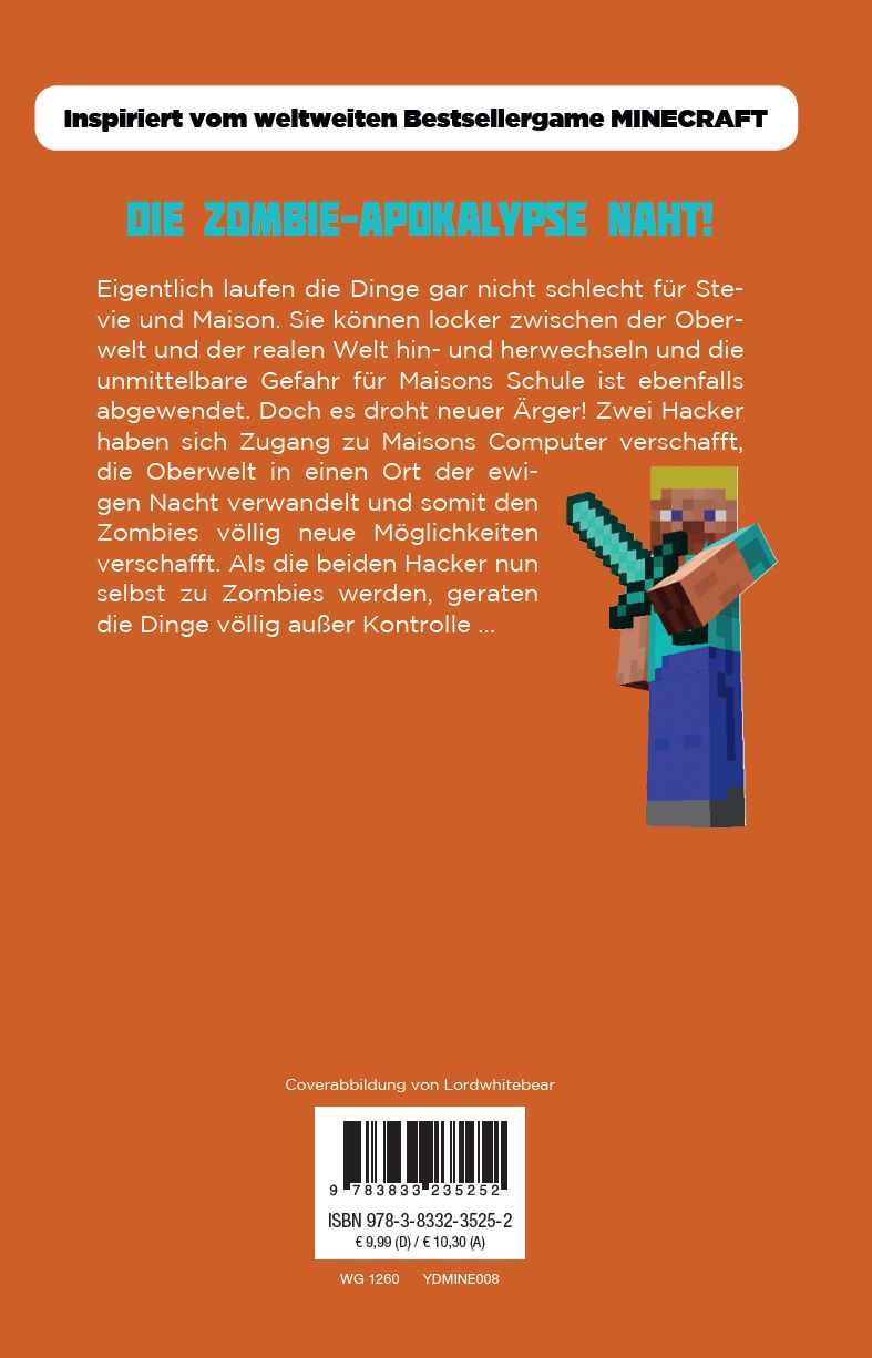 | Schlagworte | Adventure • Computer- und Onlinespiele • Cybermobber • Cybermobbing • Destiny • Digitale Lebenswelten • Herobrine • Jugendroman • Kinder/Jugendliche: Action- & Abenteuergeschichten • Kinder/Jugendliche: Action- & Abenteuergeschichten • Kinder/Jugendliche: Romane, Erzählungen, Tatsachen • Klötzchenwelt • maison • Minecraft • Minecraft-Abenteuer • Minecraft (Computerspiel); Kinderliteratur/Jugendliteratur • Oberwelt • stevie • Videogame-Roman • Videospiel-Roman • Virtuelle Welt |