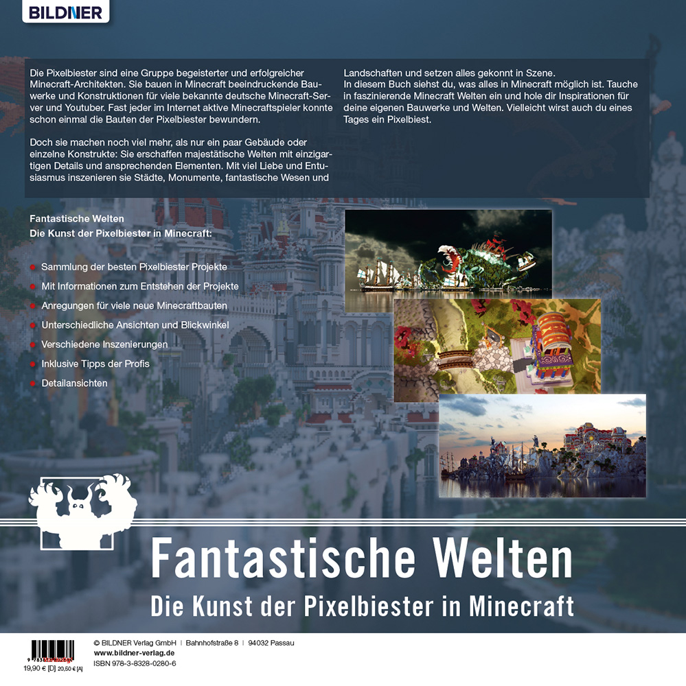 Die Pixelbiester sind eine Gruppe begeisterter und erfolgreicher Minecraft-Architekten. Sie bauen in Minecraft beeindruckende Bauwerke und Konstruktionen für viele bekannte deutsche Minecraft-Server und Youtuber. Fast jeder im Internet aktive Minecraftspieler konnte schon einmal die Bauten der Pixelbiester bewundern.Doch sie machen noch viel mehr, als nur ein paar Gebäude oder einzelne Konstrukte: Sie erschaffen majestätische Welten mit einzigartigen Details und ansprechenden Elementen. Mit viel Liebe und Entusiasmus inszenieren sie Städte, Monumente, fantastische Wesen und Landschaften und setzen alles gekonnt in Szene.In diesem Buch siehst du, was alles in Minecraft möglich ist. Tauche in faszinierende Minecraft Welten ein und hole dir in diesem hochwertigen Artbook Inspirationen für deine eigenen Bauwerke und Welten. Vielleicht wirst auch du einesTages ein Pixelbiest.Kein offizielles Minecraft-Produkt, nicht von Mojang genehmigt oder mit Mojang verbunden