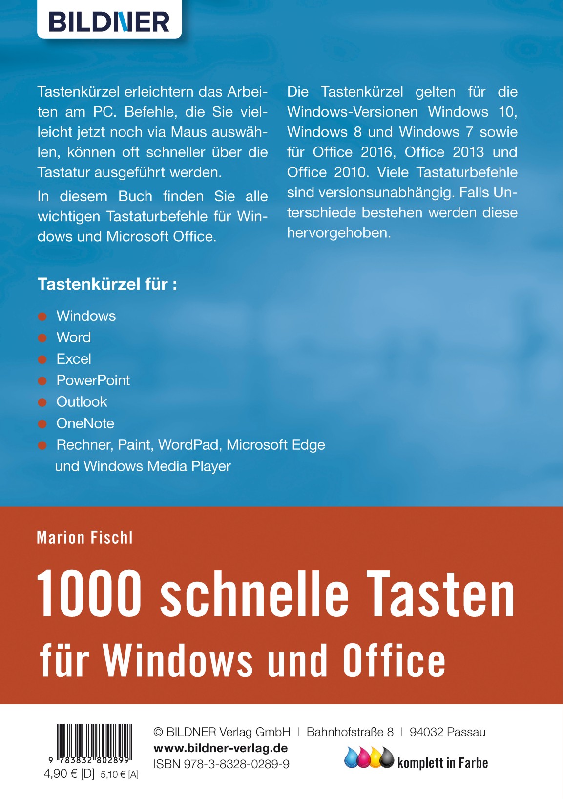 In diesem Buch finden Sie alle wichtigen Tastaturbefehle für Windows und Microsoft Office. Die Tastenkombinationen gelten für die Windows-Versionen Windows 10, Windows 8 und Windows 7 sowie für Office 2016, Office 2013 und Office 2010. Viele Tastaturbefehle sind versionsunabhängig. Falls Unterschiede bestehen, werden diese hervorgehoben.