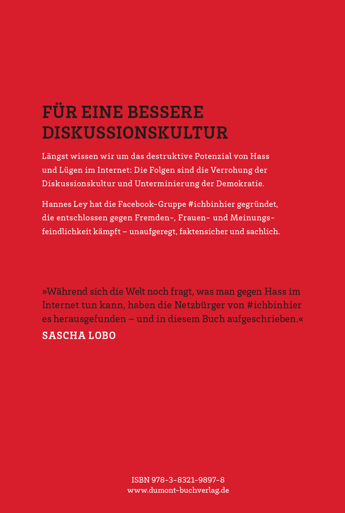 »Eindringlich und klar beschreibt [Hannes Ley], wie sein Facebook-Projekt #ichbinhier seit mehr als einem Jahr gegen Lügen und Hass im Internet vorgeht.«